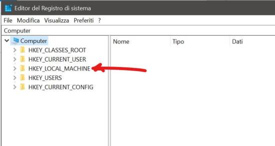 Per potere visualizzare ed eventualmente modificare le chiavi del Registry basta cliccare con il tasto destro sulla finestra Windows in basso a sinistra e scegliere dal menu Esegui (o tasto Windows + r): quindi eseguire il comando regedit. Il path da aprire nel registro di sistema è: