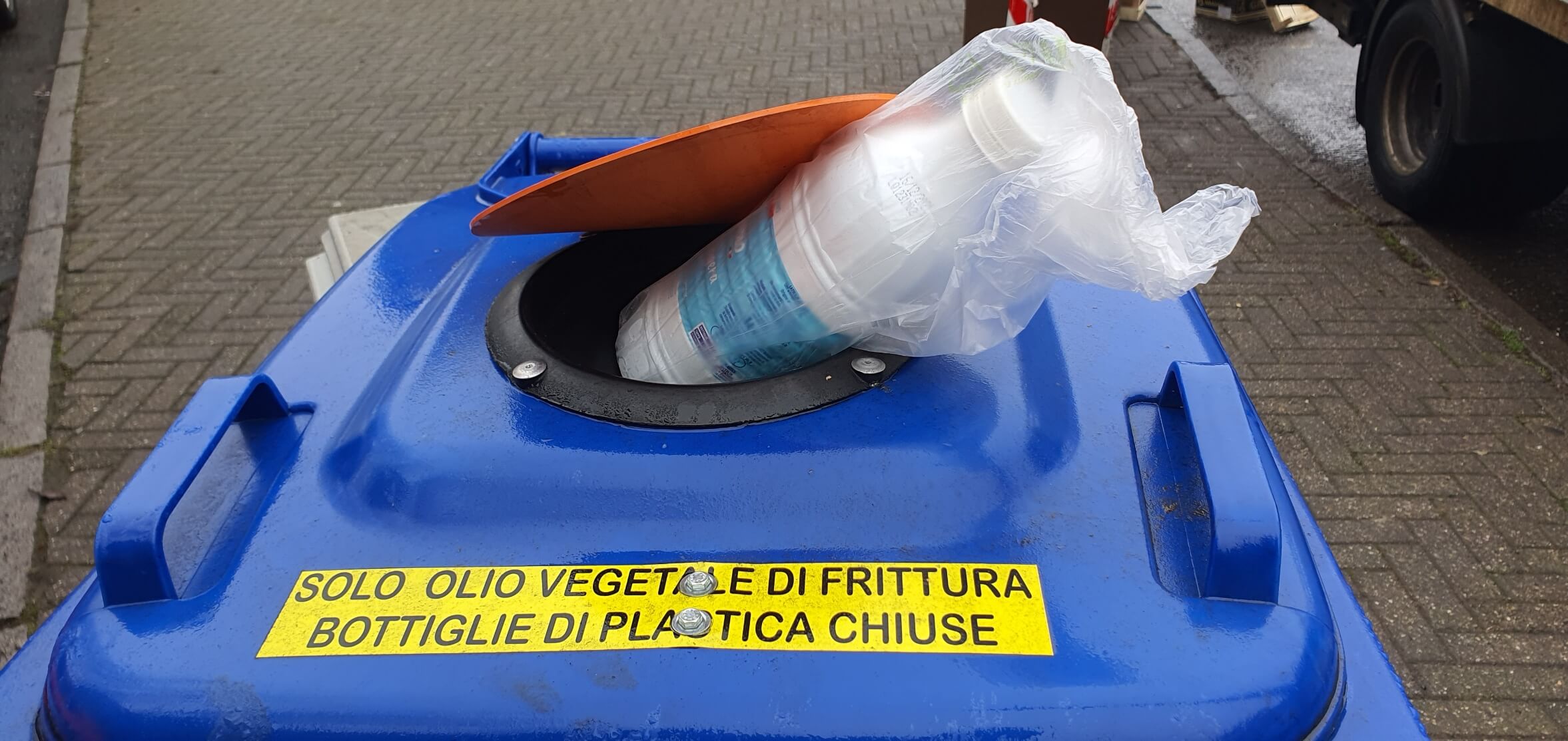 Si noti che quando si porta invece l’olio esausto in un’isola ecologica comunale, in genere viene richiesto di vuotarlo dal proprio contenitore dentro un apposito bidone di grandi dimensioni.