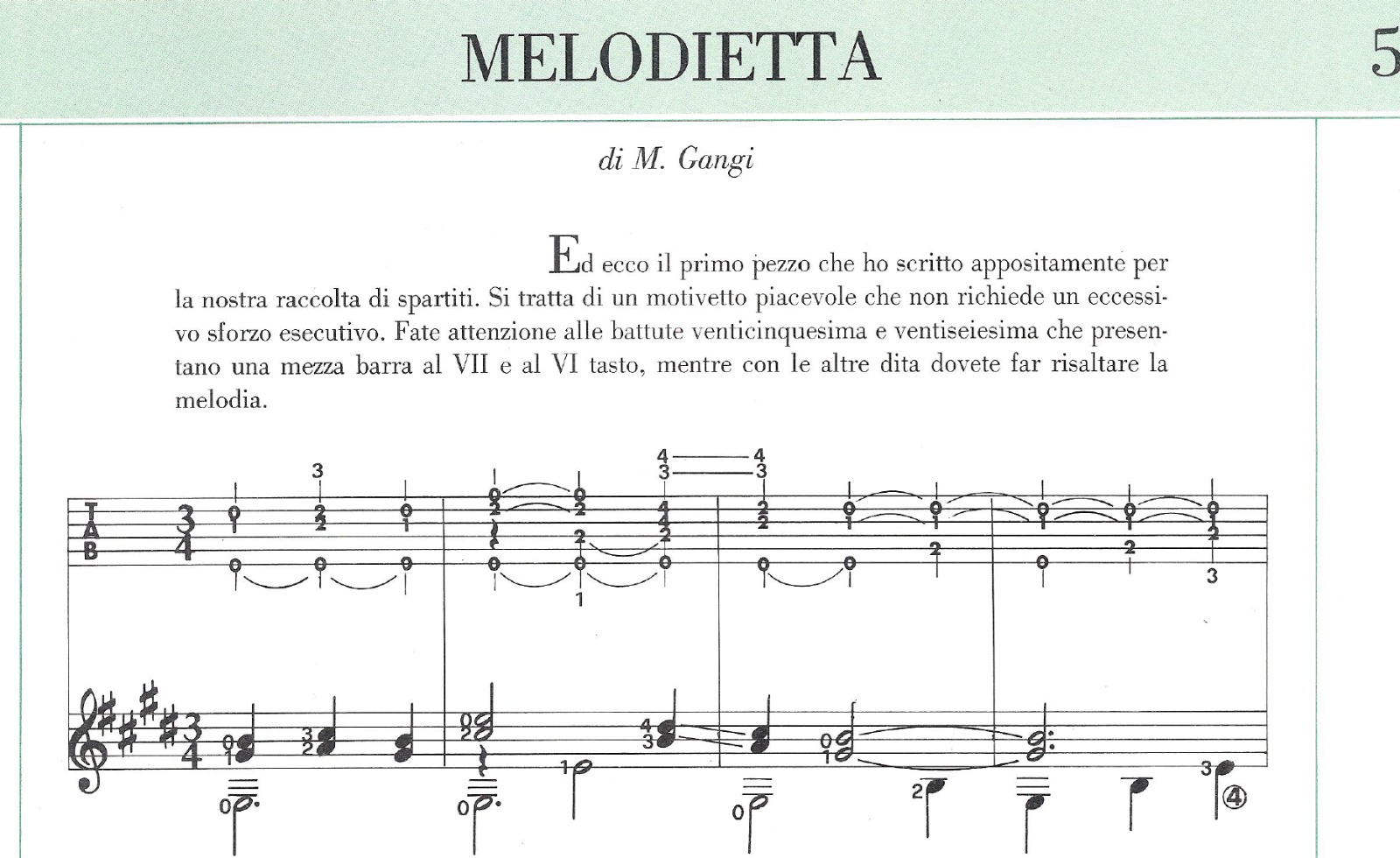 Che dire poi dei numerosi spartiti di musiche arrangiate/trascritte magistralmente per chitarra dai due maestri Gangi e Cerri, anche loro corredati da audiocassette con la loro interpretazione dei brani e con puntuali consigli sull’esecuzione? Musiche che spaziavano dalla classica al jazz, da compositori barocchi a cantautori dell’epoca… oltre a composizioni originali di quegli stessi autori. È un vero peccato che queste opere vadano perse e si possano trovare forse solo più in qualche conservatorio (e.g. Biblioteca del Conservatorio di Musica di Milano) o da qualche privato che le ha custodite religiosamente nel tempo!