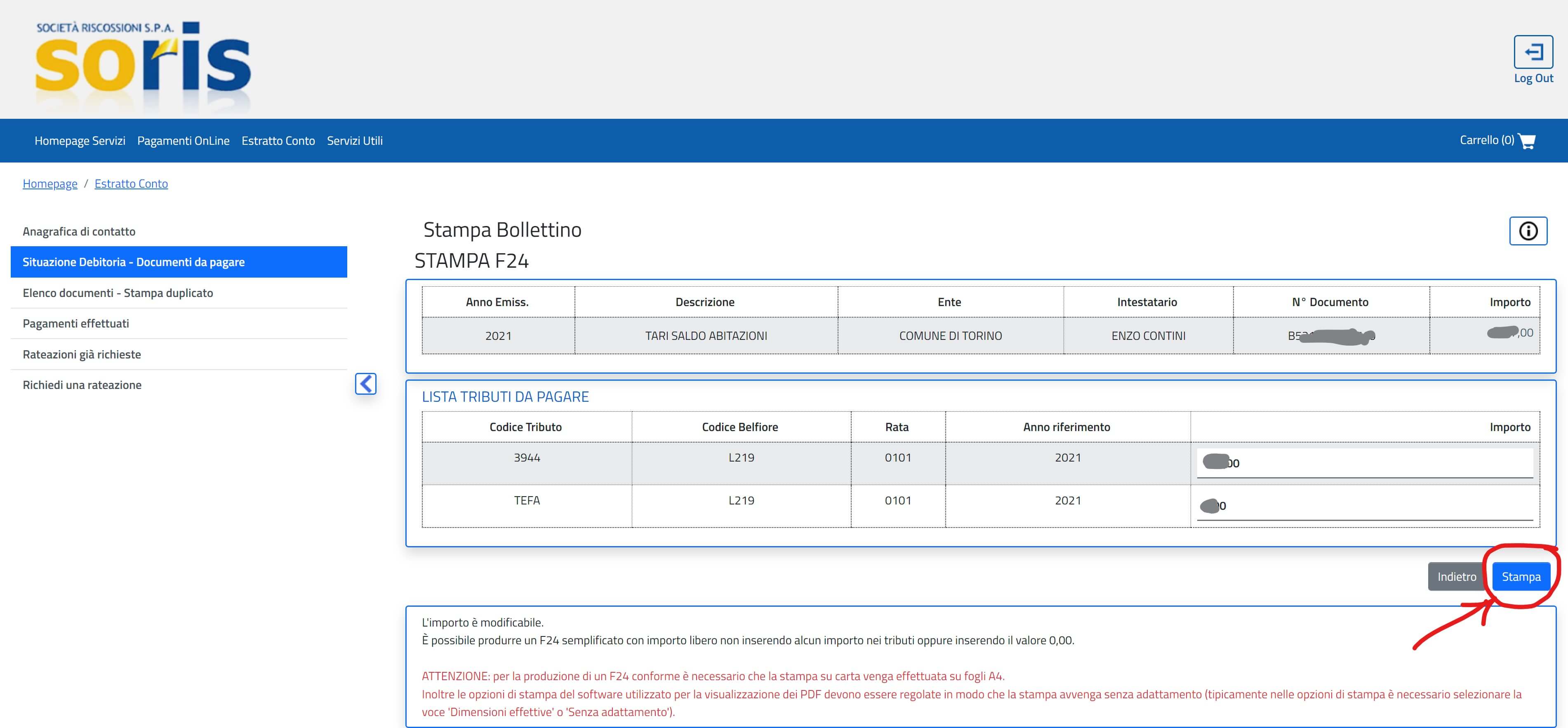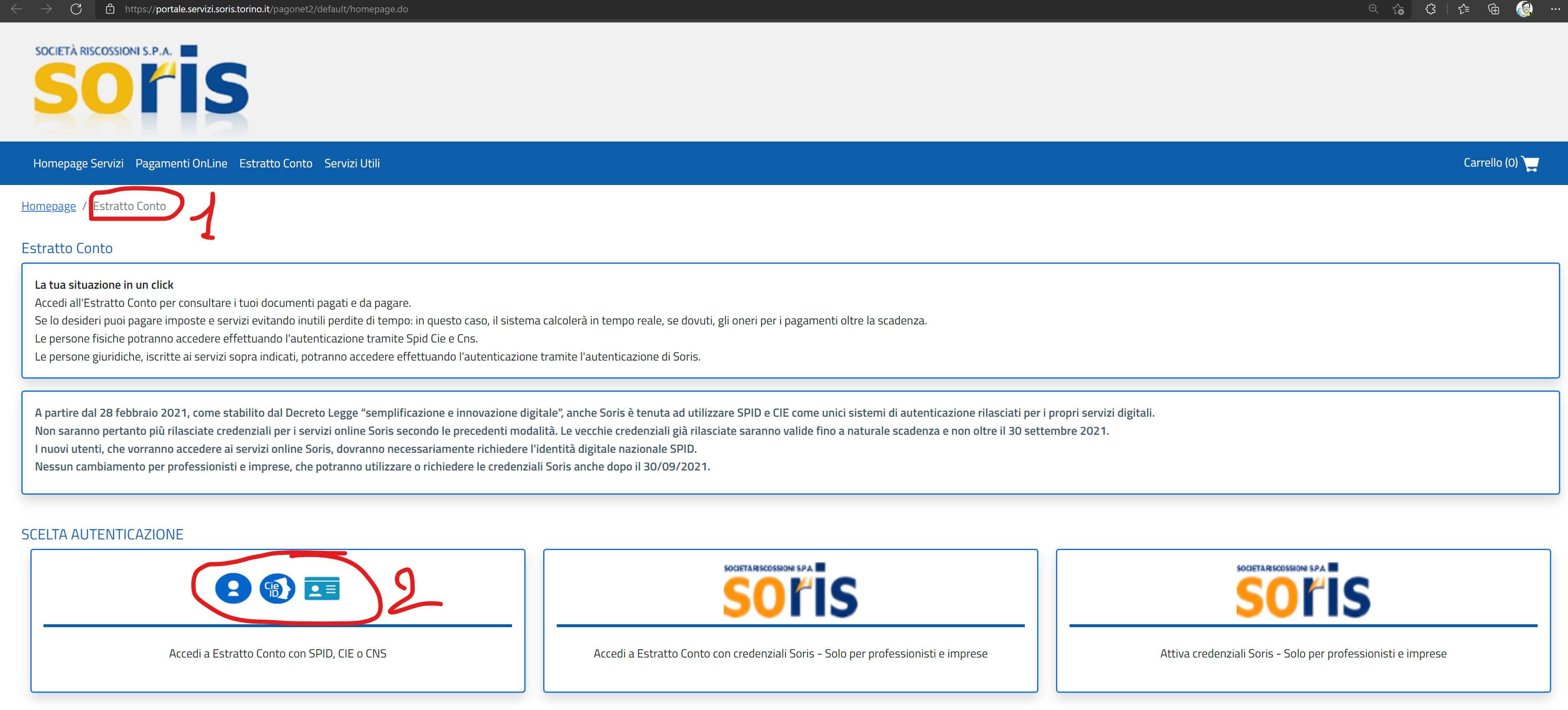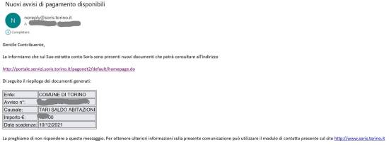 Nel seguito i vari passaggi partire dal sito della SORIS e specificatamente dal link pervenuto via email, qualora tu ti sia registrato in quel sito a ricevere notifiche (i.e. http://portale.servizi.soris.torino.it/pagonet2/default/homepage.do )