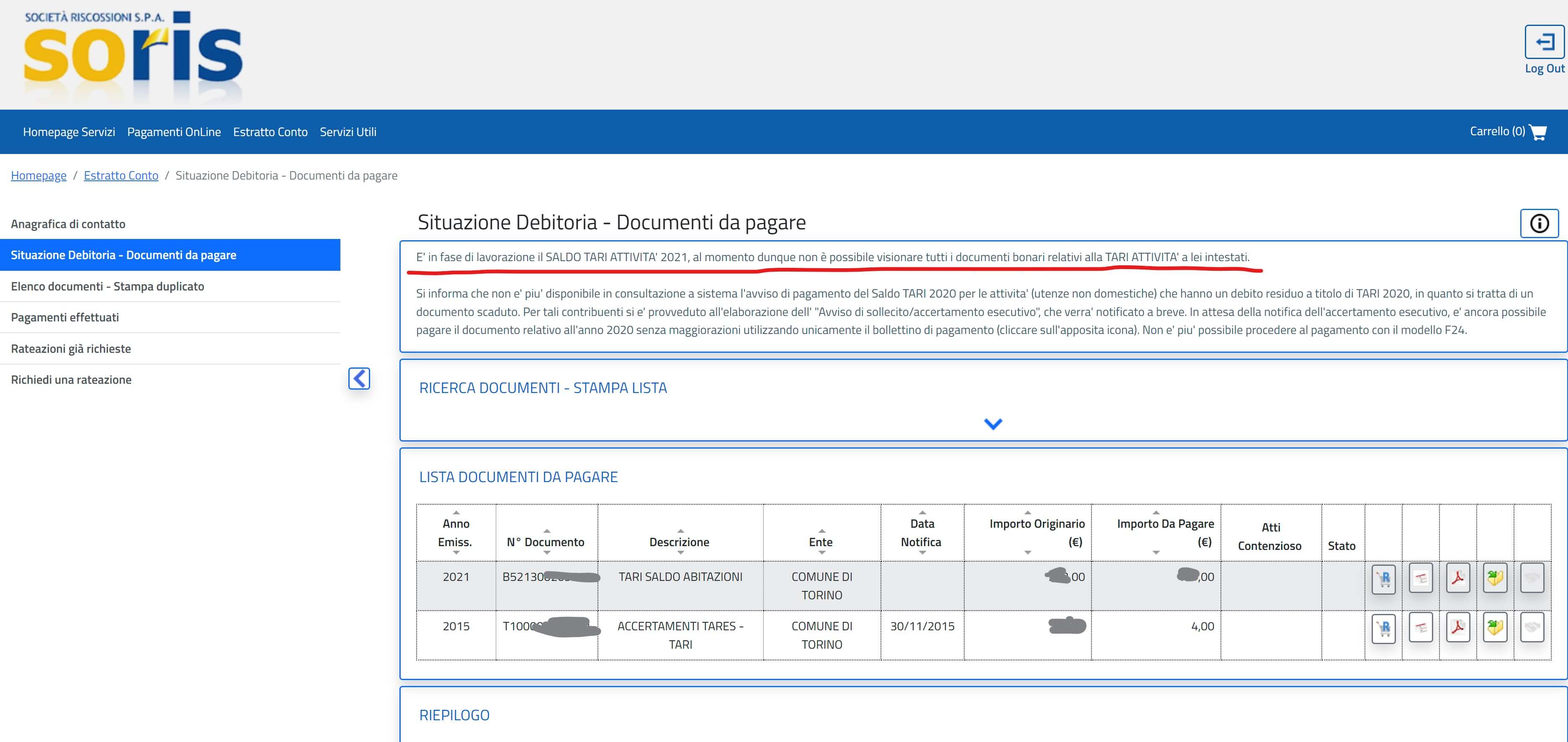 … o almeno quedta è la data di scadenza indicata nella notifica che ho ricevuto via email, essendomi da tempo registrato sul sito della Soris per ricevere notifiche di pagamenti da effettuare… sebbene poi, nel loro sito, in corrispondenza della descrizione della Situazione Debitoria, ci sia scritto in piccolo “È in fase di lavorazione il SALDO TARI ATTIVITA’ 2021, al momento dunque non è possibile visionare tutti i documenti bonari relativi alla TARI ATTIVITA’ a lei intestati“. 🤔
