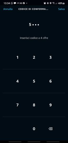 Nel seguito mostro come attivare l’acquisto vocale in dispositivi Alexa dall’app Alexa [ Altro -> Impostazioni account -> Acquisti tramite comando vocale -> attivare interruttore e impostare nella sezione conferma di acquisto un codice per uno o più dei profili indicati e abilitati], e quindi come impostare una conferma di acquisto tramite un codice di quattro numeri che uno imposta. Si noti che per definire tale codice è necessario abilitare almeno uno dei profili vocali salvati e visibili nell’apposita sezione Profilo vocale: