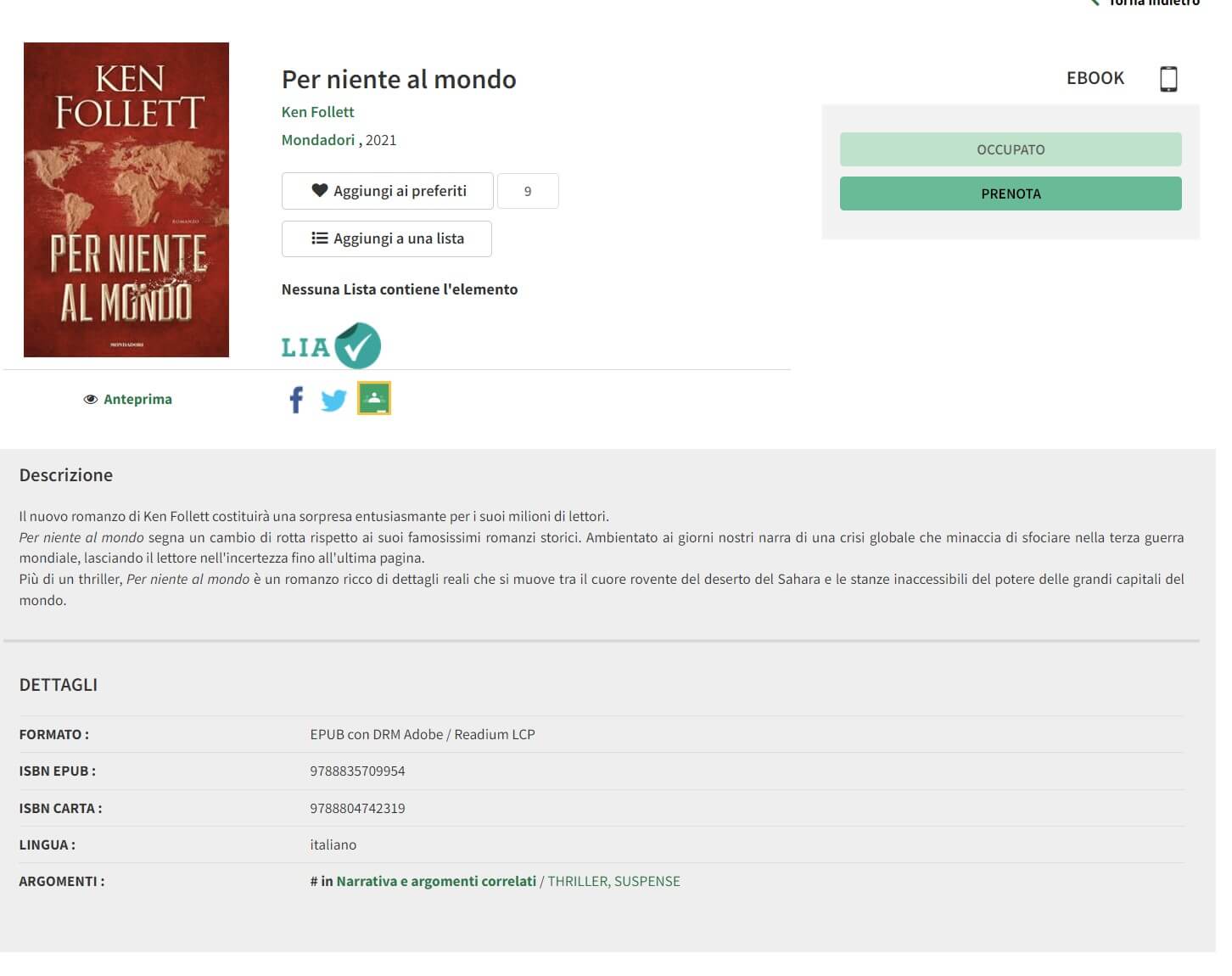 Le condizioni che regolano la biblioteca digitale online sono spiegate nel dettaglio in questa pagina del sito. Da qui si apprende, ad esempio, che il prestito di un ebook ha una durata di 14 giorni e non è prorogabile. Si possono prendere in prestito al massimo 2 ebook nell’arco del mese solare; non è possibile restituire i titoli presi in prestito prima della scadenza, vincolo solo di natura tecnica. Il numero complessivo di prestiti mensili su tutte le utenze dipende invece dalle disponibilità del budget: infatti, ogni prestito ha un costo e le risorse economiche non sono infinite! 🙄