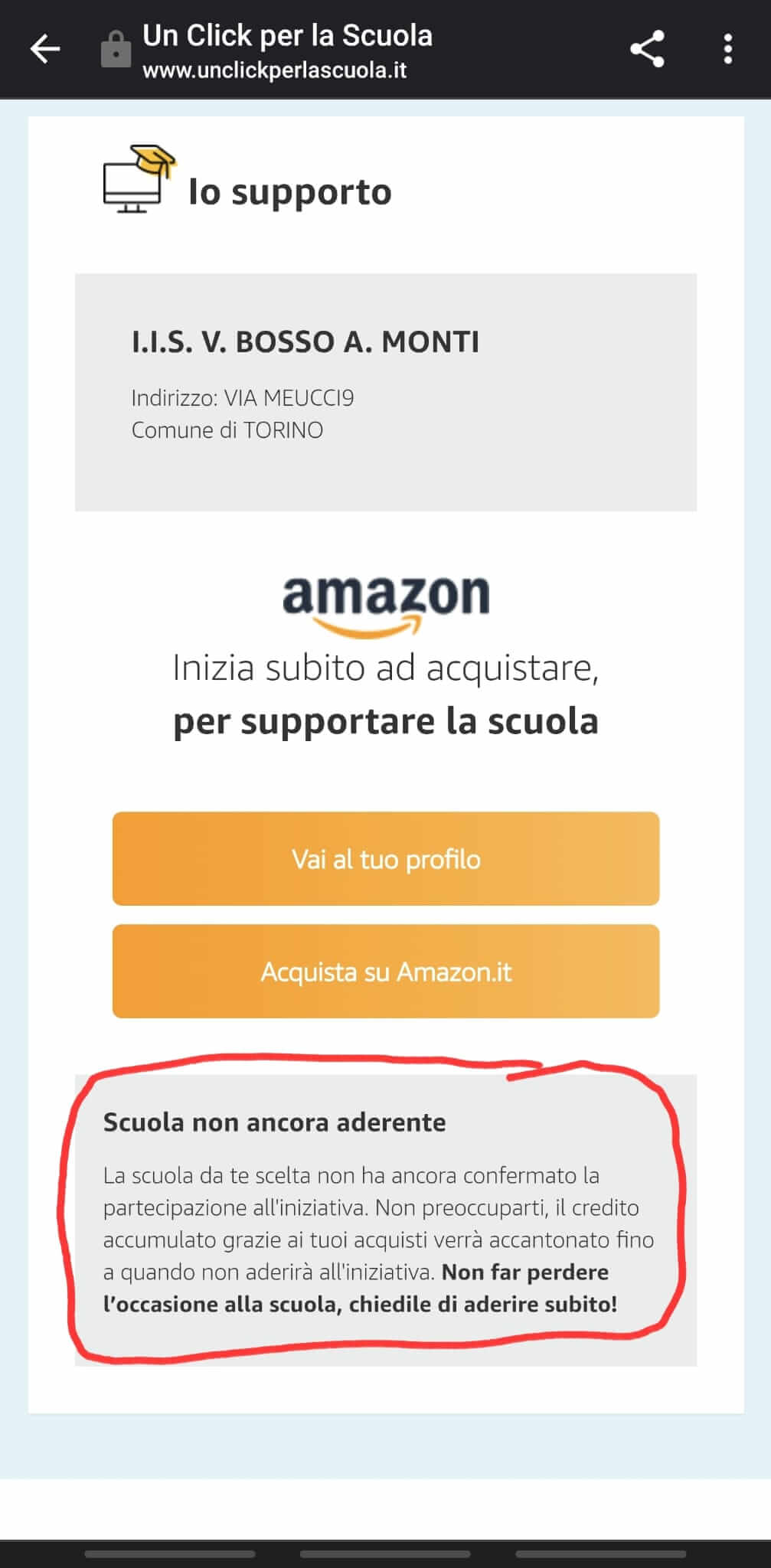 Sebbene forse la richiesta di una nuova adesione, almeno quella da parte delle scuole si poteva davvero evitare, forse ci sono particolari motivi che mi sfuggono e che hanno portato Amazon a optare per questa scelta: la procedura richiesta sembra tuttavia essere assai agevole sia per il cliente sia per la scuola, per cui penso sia un’opportunità da non lasciarsi scappare dal momento che non ci costa nulla!