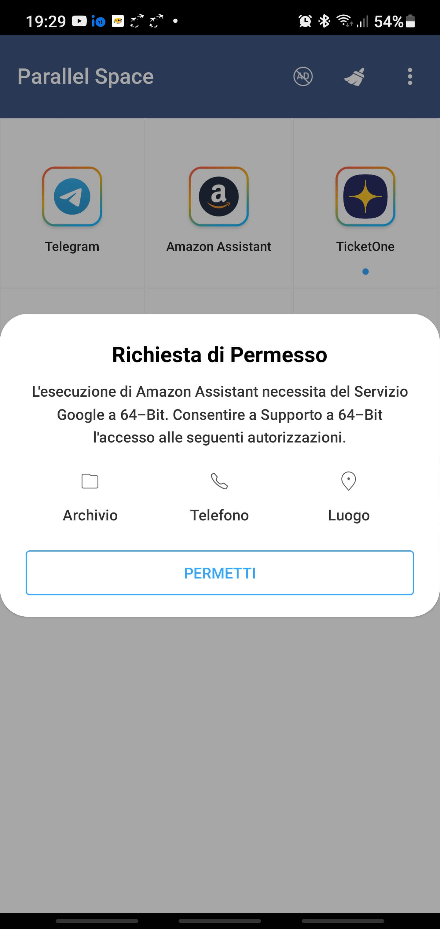 Scegliendo la duplicazione di alcune app, possono essere richiesto di accettare particolari permessi o l’installazione di altre versioni (e.g. a 64bit) del medesimo programma: