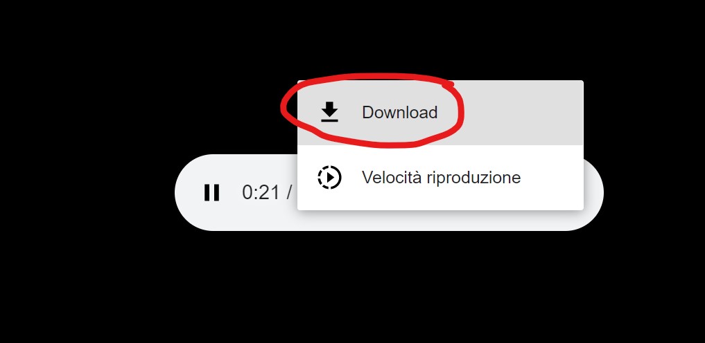 A questo punto è sufficiente copiare tale URL (click tasto destro -> Copia valore) e poi aprire un nuovo tab nel browser per incollarcela e richiedere quindi al browser di riprodurre ciò che è collegato a quell’indirizzo. Anche qui basta fare click con il tasto destro e selezionare Download dal menù che compare sul video control HTML, per avviare il download del file: