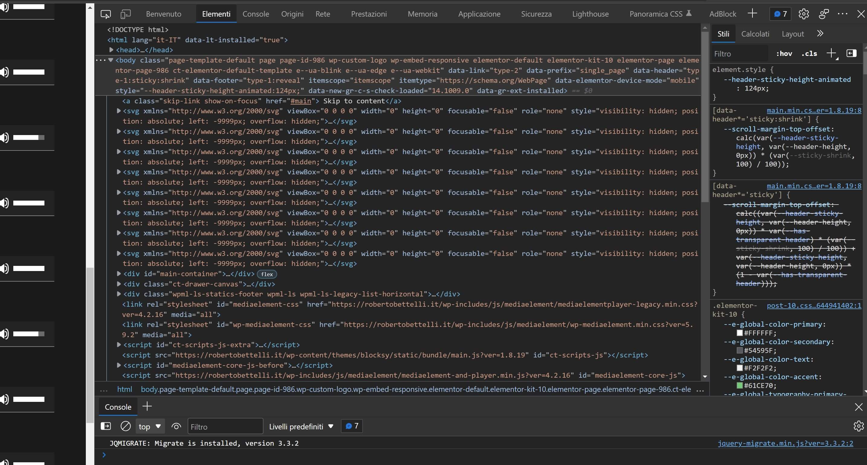 Anche se l’interfaccia è migliorata, la metodologia da utilizzare per riuscire a scaricare i file mp3/mp4 rimane sostanzialmente quella stessa che avevo descritto nel vecchio post: si vedono i sorgenti della pagina (tab Elementi) e si ricercano eventuali riferimenti appunto a URL relative a file .mp3 o .mp4 .