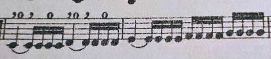 Quando in un passaggio ci sono 2 o più note in successione del medesimo valore (e.g. crome, semicrome), si usa raggrupparle nel modo seguente: ♫ ♬