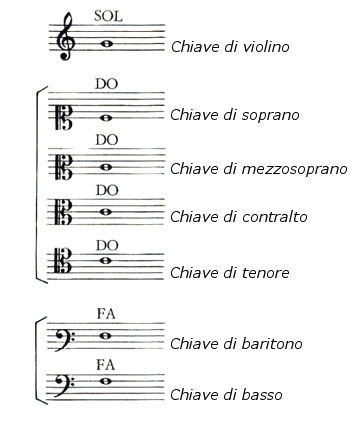 Ci sono poi anche altre chiavi musicali, per un tortale di sette (i.e. setticlavio). Ciascuna fornisce una sua “chiave di lettura” di una determinata gamma di altezze dei suoni: lo scopo di ciascuna è quella di riportare il più possibile le note dentro il pentagramma, rendono più leggibile la melodia.