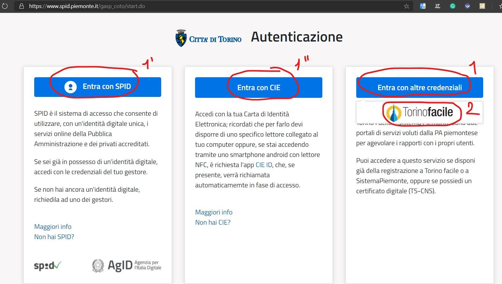 Autenticati passando da quel link di torinofacile che ho indicato. Comunque sembra che ora funzioni anche la procedura di autenticazione a cui si giunge partendo dal link fornito nella email della Soris e fosse un problema “temporaneo”: ho aggiunto un P.S. in fondo al post con notizie e considerazioni al riguardo.