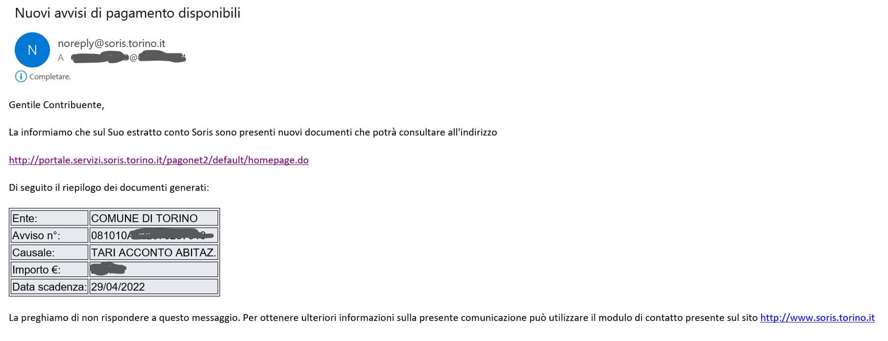 Sembra che oggi funzioni l’autenticazione alla pagina dell’Estratto conto partendo dal link (http://portale.servizi.soris.torino.it/pagonet2/default/homepage.do) fornito nella email della Soris: ieri hanno probabilmente avuto problemi nella gestione dell’autenticazione con SPID, inconcepibile per un sito pubblico che deve garantire comunque un’operatività 24/24 7/7 almeno per l’accesso al sito, non pretendo per tutti i servizi! Forse ci potrebbe essere stata qualche segnalazione (magari qualche messaggio tra le news dell’homepage del sito Soris?) che evidenziava tale disservizio, ma sicuramente questa non era visibile eseguendo la procedura indicata nella email della Soris, vale a dire procedendo a partire da quel link fornito: se la problematica era conosciuta, costava tanto almeno mettere tale avvertimento di momentanea indisponibilità del servizio nella pagina per l’autenticazione a cui quel link portava?