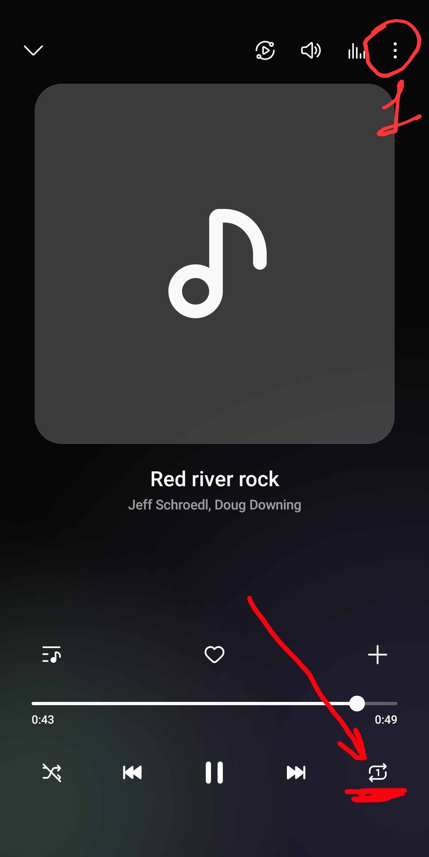 Inoltre, assai utile per lo studio di un brano musicale specifico da riprodurre e suonare in simultanea con il proprio strumento, è poi l’impostazione di ripetere ciclicamente sempre lo stresso brano (opzione in basso a destra nel player Samsung, rappresentato con un’icona di un “1” all’interno di due frecce circolari):