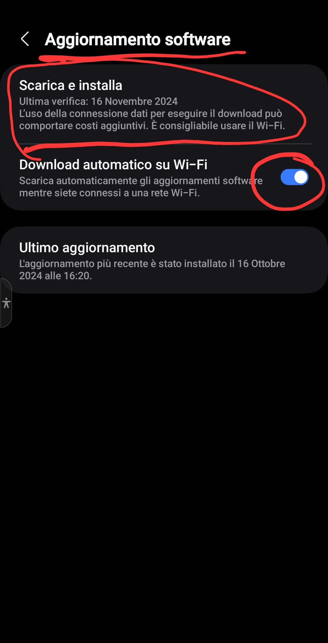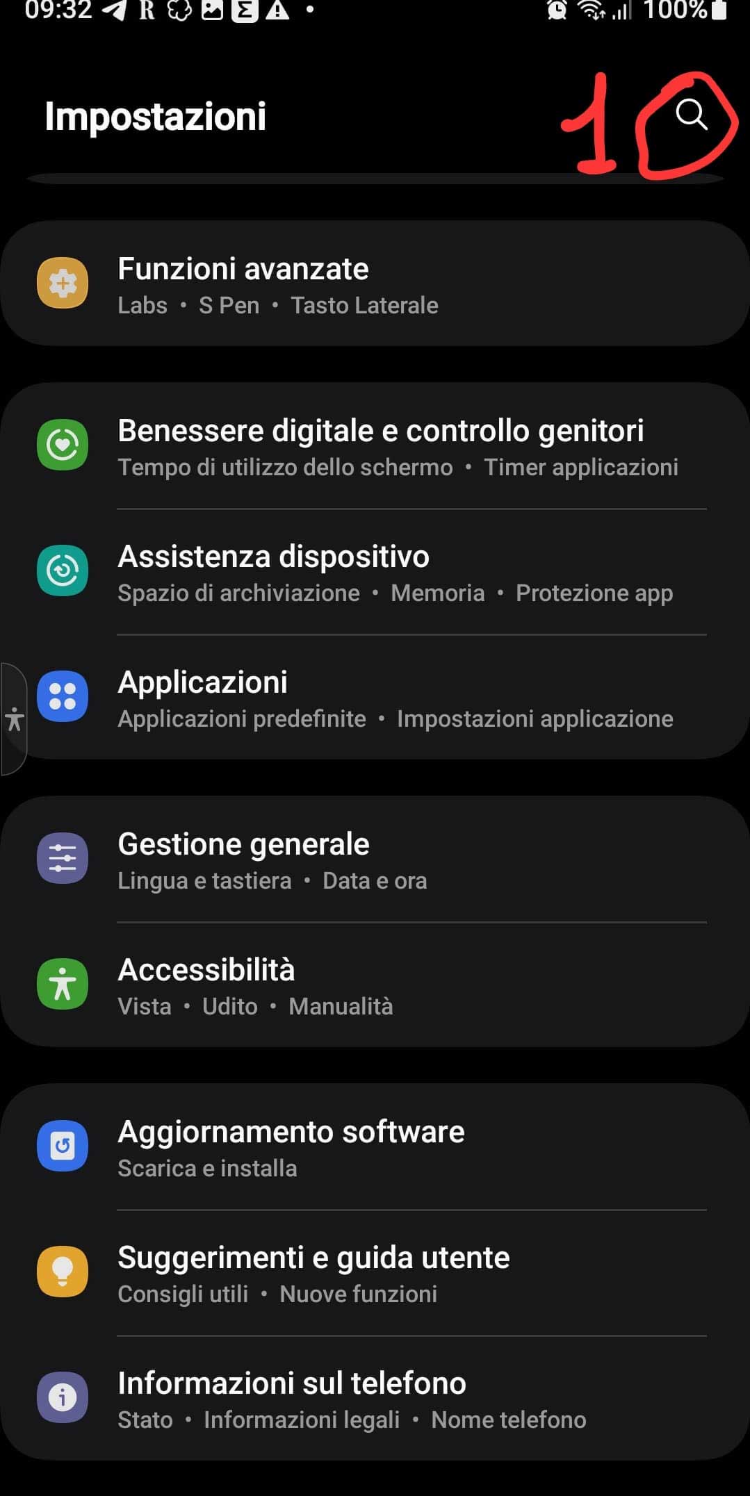 Per trovare tutte le tipologie di aggiornamenti si può anche cercare, ad esempio, “aggiorn” con la lente di ingrandimento presente nella pagina delle impostazioni dello smartphone: