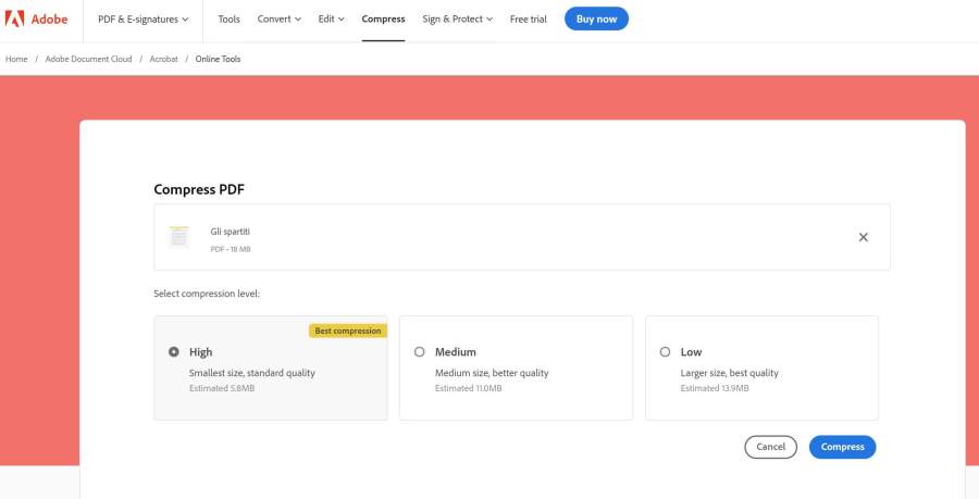 Convertire delle immagini jpg in un file pdf; comprimere un file pdf perché risulti di dimensioni minori