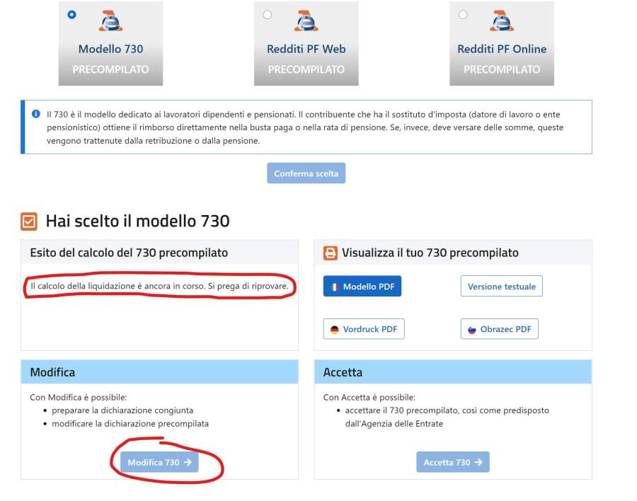 Quando, nella sezione del modulo precompilato del 730 dell’Agenzia delle Entrate, il pulsante di Modifica risulta disabilitato