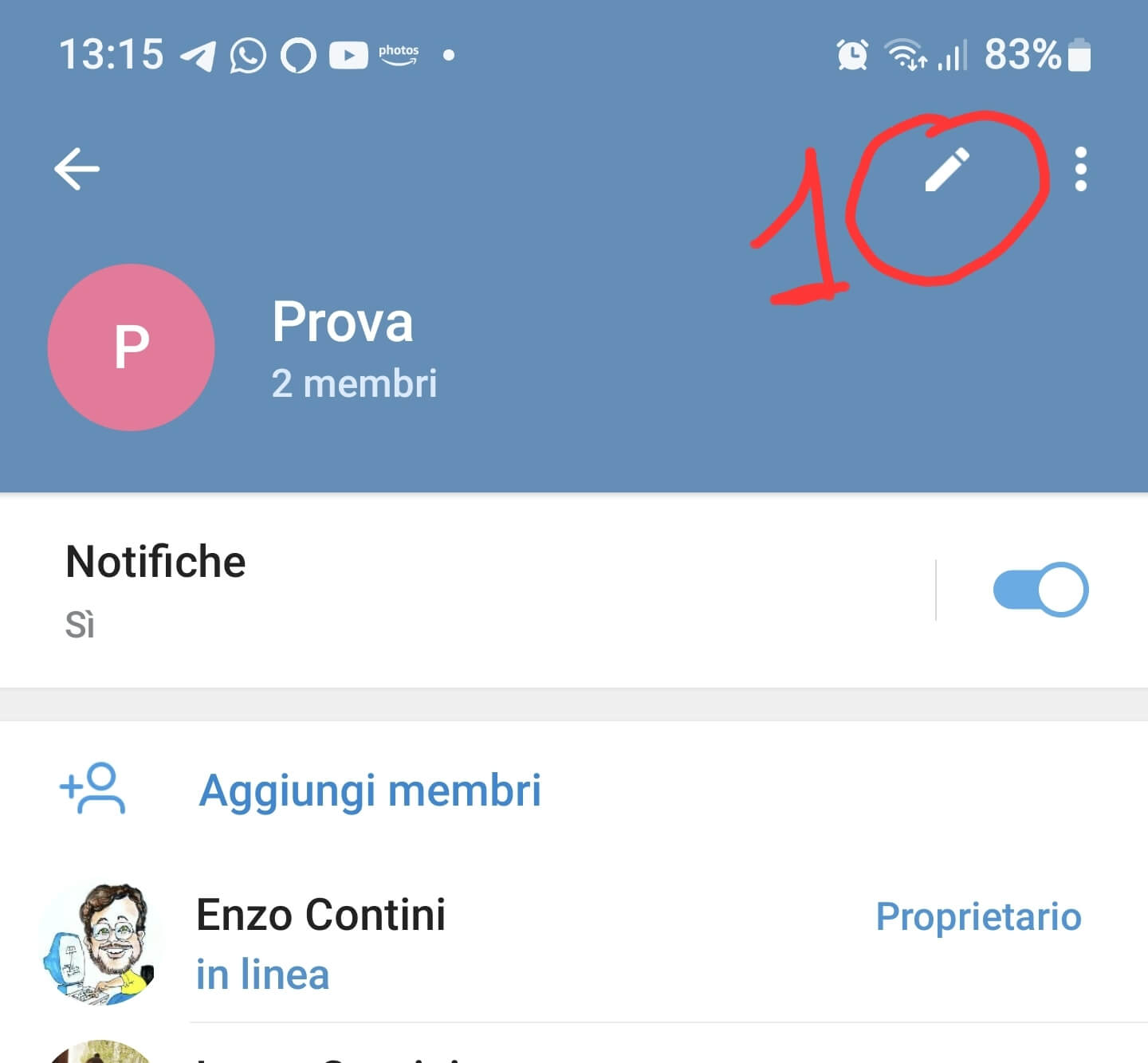 - Si tocca l’icona di matita in modo da entrare nella sezione che consente di modificare le proprietà relative a quel gruppo;