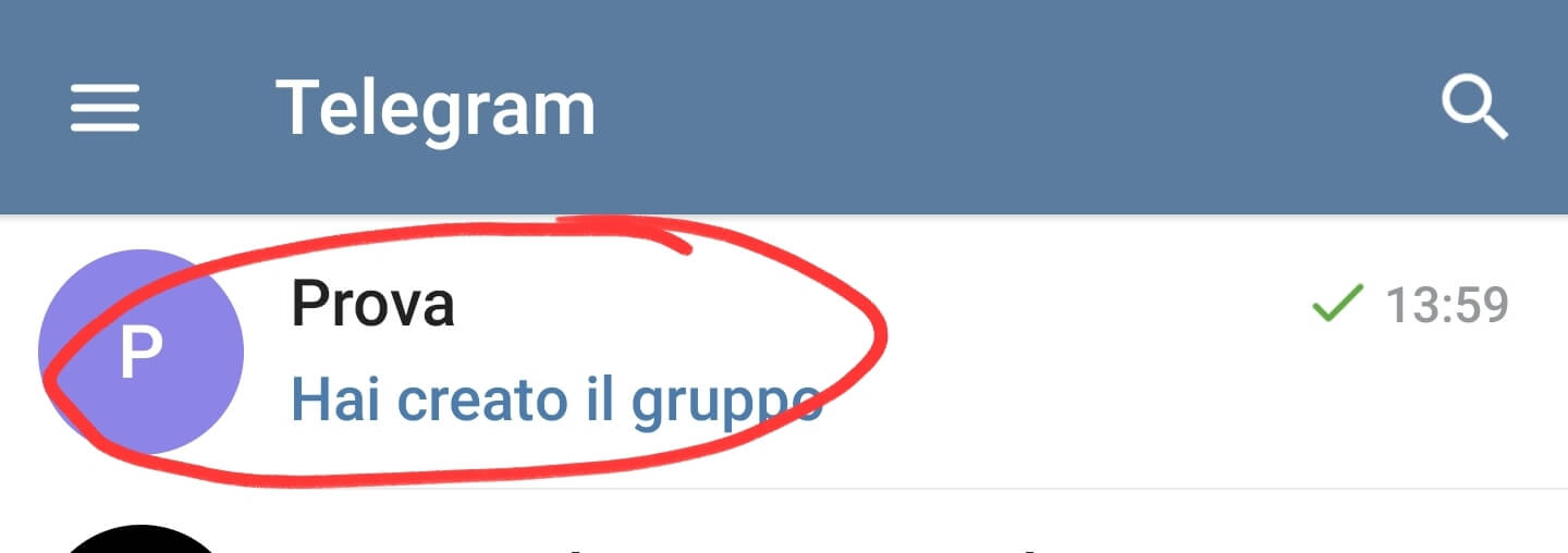 - Nella pagina che elenca i propri contatti/gruppi Telegram, si seleziona il gruppo desiderato (e.g. Prova);