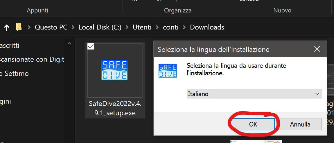 Una volta installato quel programma, lanciando il file .exe scaricato, ci si trova installata (almeno nel mio caso in cui la carta è del tipo ST2021) l’app SafeDive2022: questa compare infatti nell’elenco delle applicazioni, in una cartella STMicroelectronics. Un collegamento a quell’app viene inserito anche sul desktop.