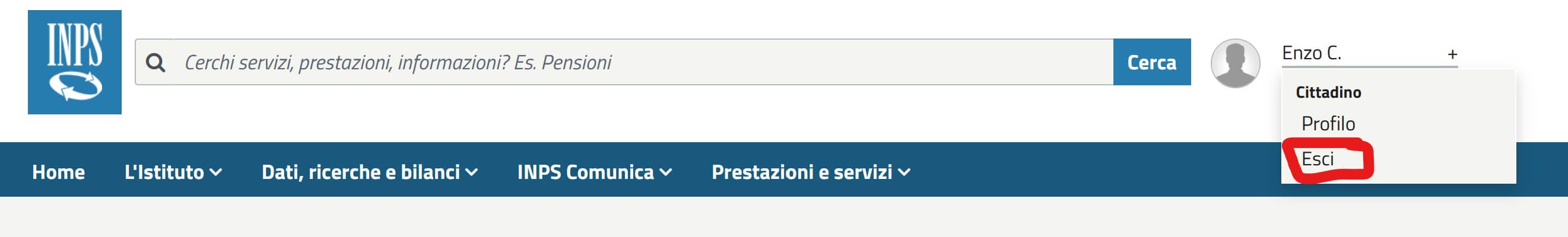 4) Terminata la navigazione nel sito è assai opportuno uscire dalla propria area autenticata, cioè premere il tasto Esci/Logout sicuramente presente tra voci del menù del sito stesso. Ad esempio, nel sito dell’INPS si deve cliccare sul proprio nome (in alto a destra) per avere visualizzato un menù con la scelta Esci da selezionare: infatti spesso alcuni siti istituzionali non gestiscono a dovere il processo di autenticazione e, se uno non esce esplicitamente, potrebbero verificarsi successivamente problemi al prossimo tentativo di accesso, anche se questo avverrà dopo ore/giorni (vedi il mio post Agenzia delle Entrate 730/2020: “Il browser in uso ha una sessione già attiva o non chiusa correttamente” alias “come dover cancellare la cache/cookies di un browser per poter nuovamente accedere a un sito”):