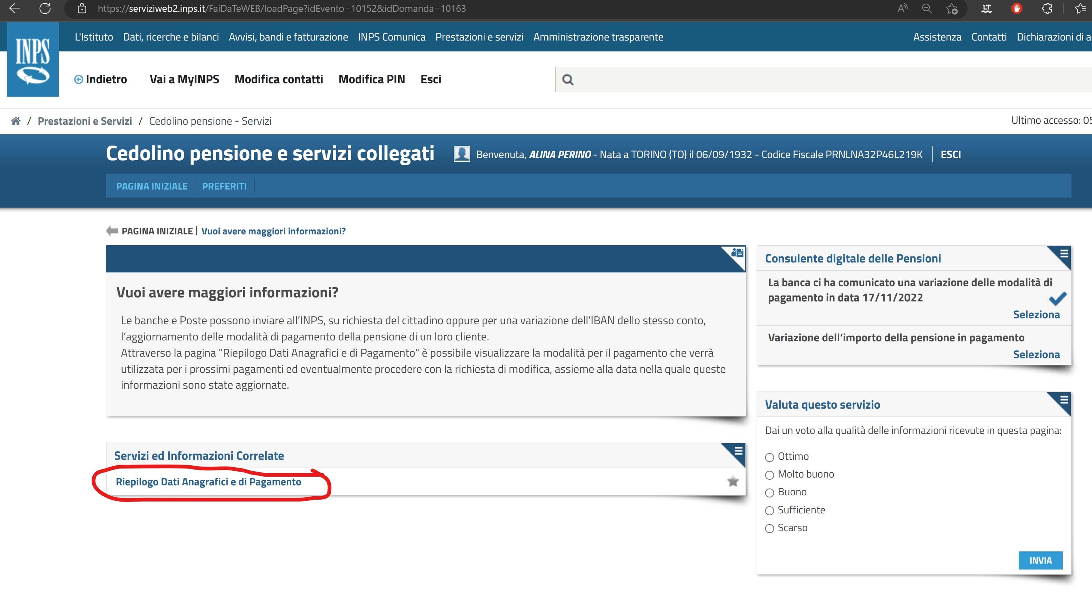 Risulta quindi necessario (o almeno conveniente in quanto non risulta così chiaro se qualche comunicazione/operazione venga fatta in automatico dalla banca) procedere a modificare nel sito dell’INPOS le proprie coordinate bancarie. Una volta effettuato l’accesso al sito INPS, la sezione che consente di effettuare tale modifica si trova attualmente a questo link. Tuttavia il sito potrebbe modificarsi con il tempo e il precedente link indicato non essere più valido. Qualora succeda, la procedura più semplice per trovare comunque quella sezione, è quella di effettuare in quel sito (utilizzando la sezione Cerca in alto con la lente d’ingrandimento) la ricerca di “cambiare le coordinate di accredito della pensione“.