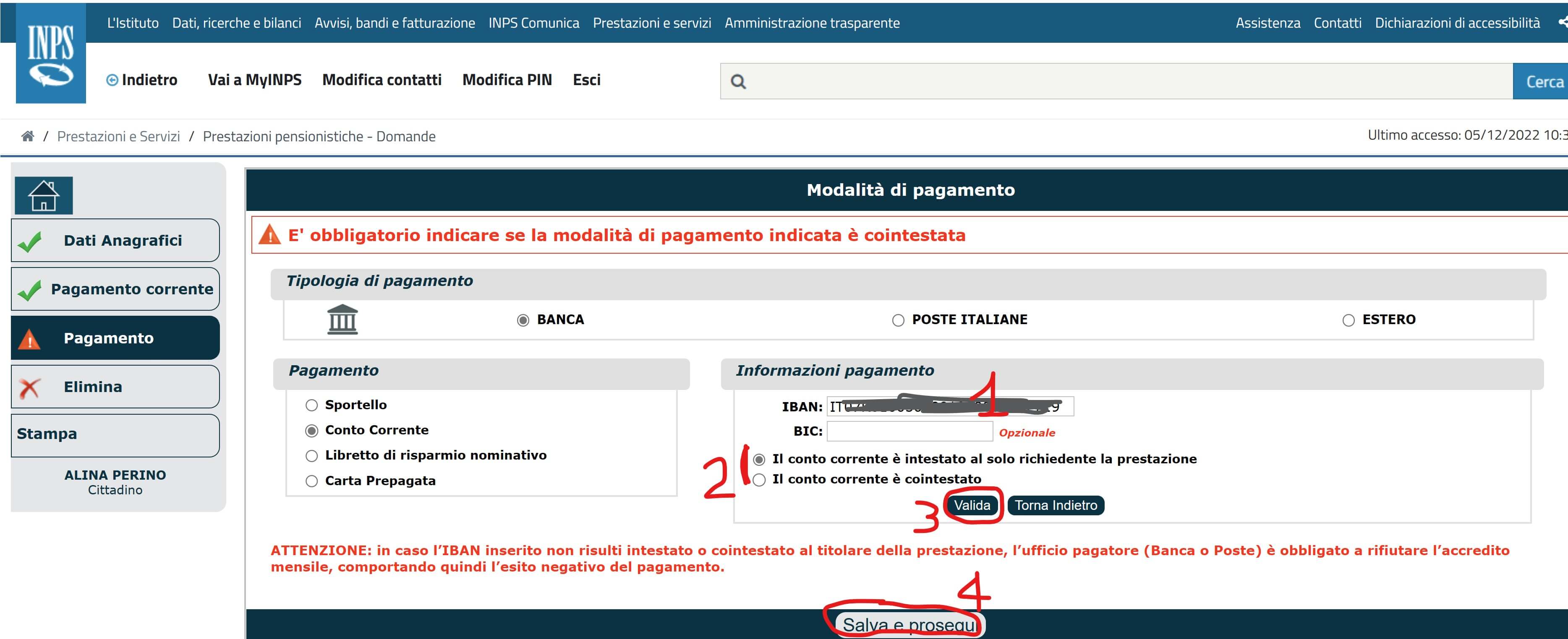 - Per ragioni di sicurezza (almeno così viene detto 🤔), durante la procedura viene innanzitutto chiesto di scrivere le coordinate bancarie attualmente in vigore, e solo successivamente viene presentato il form per inserire le coordinate nuove che uno desidera sostituire alle precedenti.