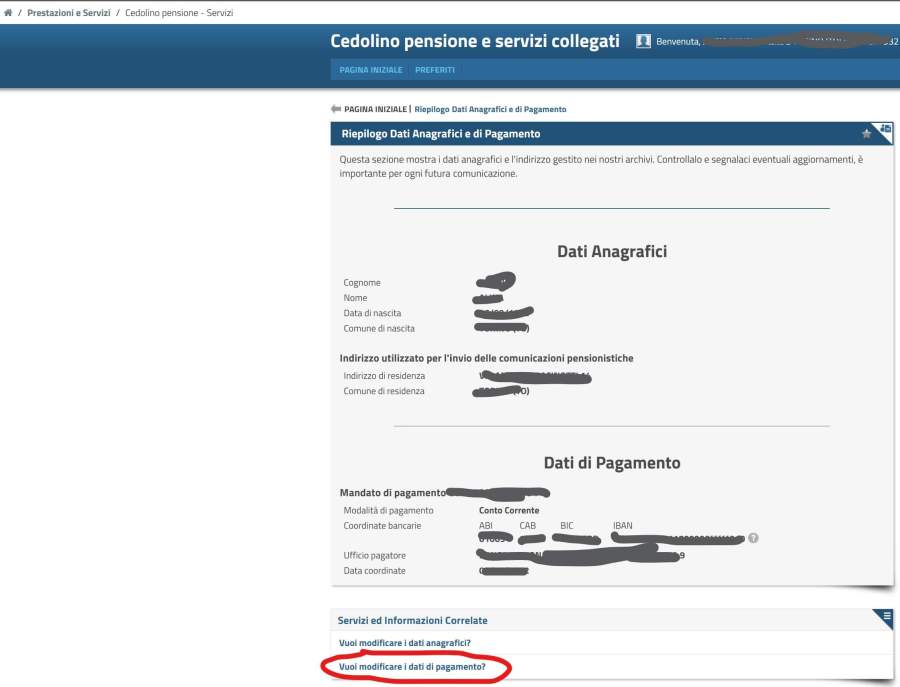 Come cambiare le coordinate di accredito della pensione nel sito dell’INPS