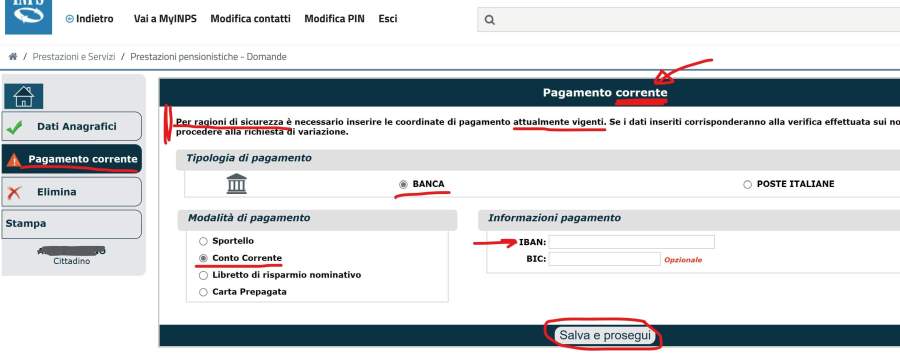Come cambiare le coordinate di accredito della pensione nel sito dell’INPS