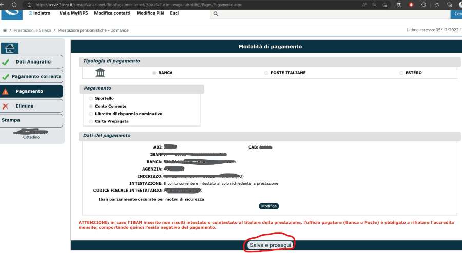 Come cambiare le coordinate di accredito della pensione nel sito dell’INPS