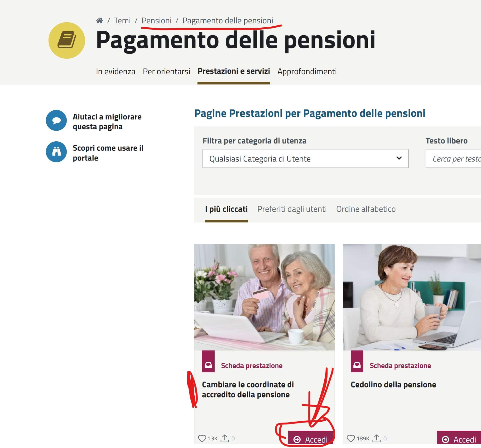 Come cambiare le coordinate di accredito della pensione nel sito dell’INPS