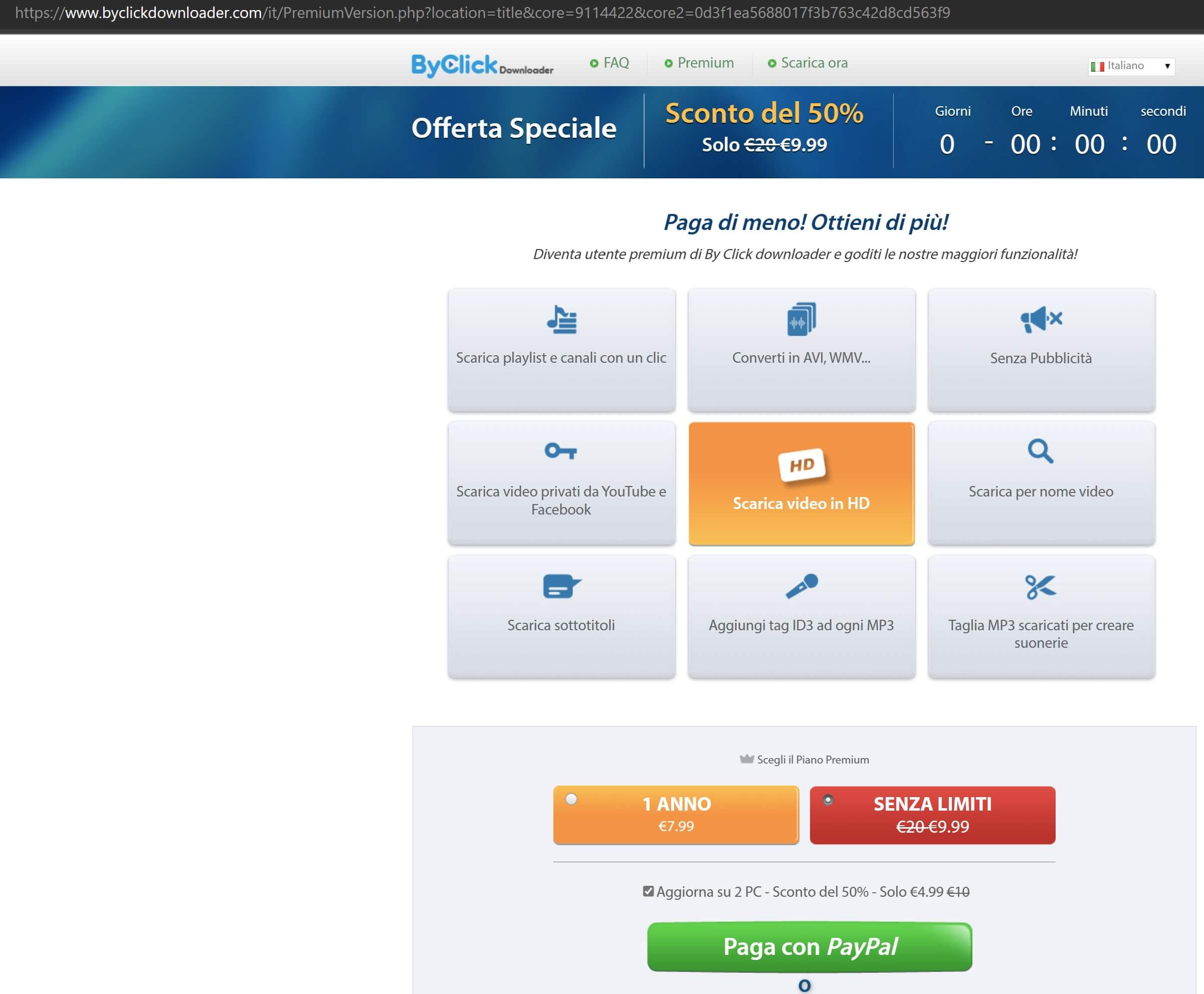 Ovviamente YouTube non consente di scaricare in locale una playlist, anzi neppure un singolo video se non abbonandosi alla sua offerta Premium: inizialmente viene presentata la possibilità di usufruire di un periodo di prova gratuito, senza rendere evidente quanto duri e quale sia poi il costo applicato successivamente, qualora uno non disdica: solo facendo un’opportuna ricerca si scopre poi che il periodo di prova è di un solo mese e, successivamente, il costo di tale abbonamento è di ben 11,99 €/mese, insomma non irrisorio.