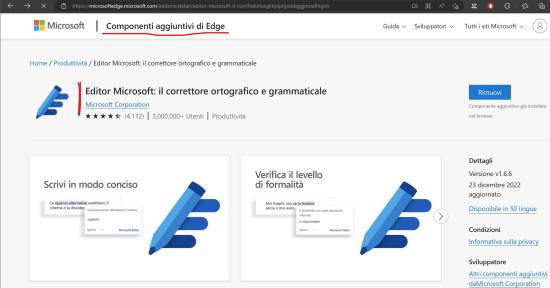 In questo nuovo post aggiungo, come possibile alternativa scoperta proprio oggi, la possibilità di utilizzare un’altra estensione del browser Edge, realizzata da Microsoft stessa e che può tornare utile per effettuare la correzione di scrittura in qualsiasi lingua quando si utilizza quel browser: Editor Microsoft: il correttore ortografico e grammaticale.