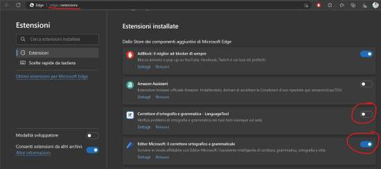Si noti che, se già si era installato un altro correttore come estensione di Edge, questo può entrare in conflitto, per cui è opportuno lasciarne attivo solo uno: conviene quindi disabilitare l’altro e lasciare attivo quello che si considera migliore per il proprio utilizzo, dopo avere ovviamente provato entrambi in momenti differenti!
