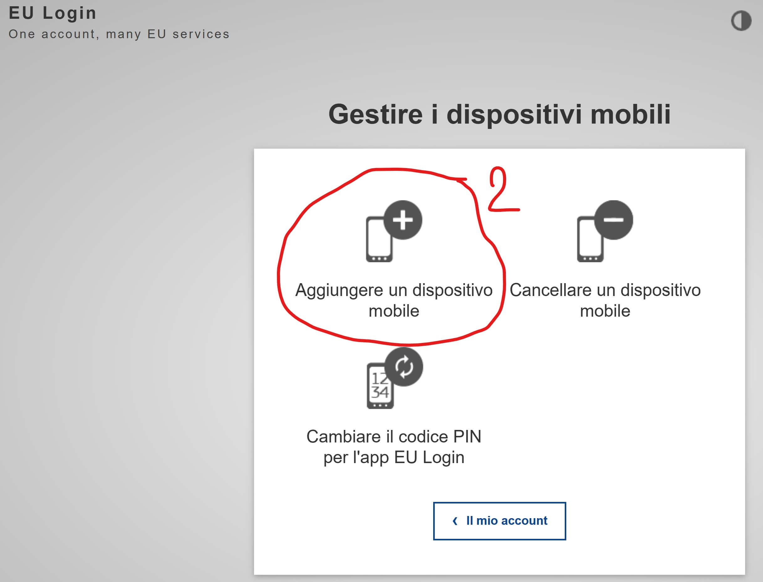 - Aggiungere un secondo dispositivo (smartphone o tablet) al tuo account EU LOGIN indicando quindi il numero del proprio cellulare con il prefisso internazionale (+39) e indicando un PIN di 4 cifre che dovrà essere inserito sia quando si leggerà con l’app EU Login il QR code che viene mostrato dopo aver confermato l’inserimento di tale numero sia tutte le volte che in futuro ci si vorrà autenticare per accedere a quel sito tramite quell’app EU Login.