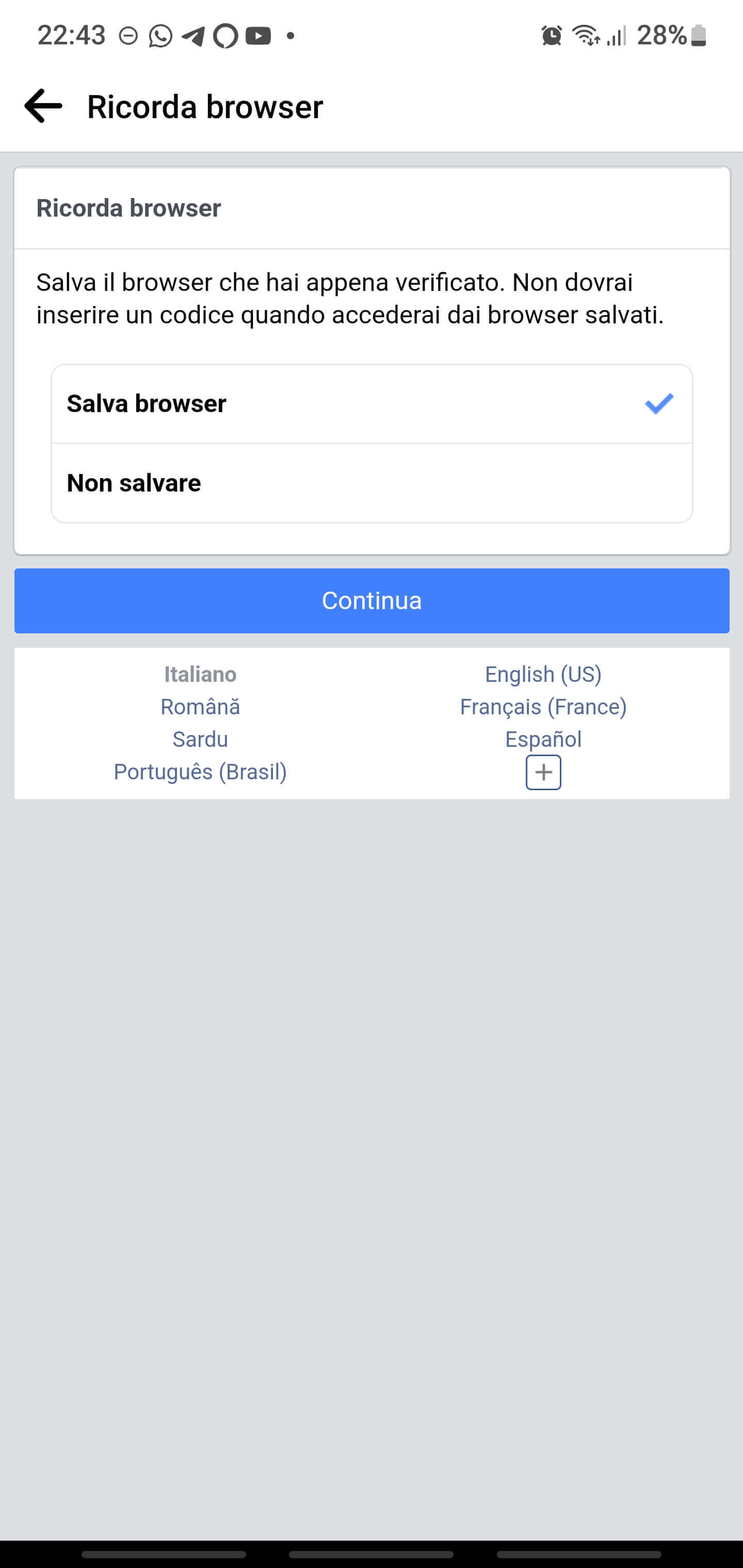 L’autenticazione a due fattori si basa sull’utilizzo congiunto di due metodi di autenticazione individuali: ad esempio prevede l’invio di un codice OTP sul proprio cellulare che assicura che il nuovo dispositivo sia uno su cui si desidera effettivamente autenticarsi su Fb. Nota che esistono comunque metodi di riserva per poter accedere anche se il metodo di sicurezza attualmente scelto non fosse disponibile, pur mantenendo non sufficiente l’utilizzo della sola password: