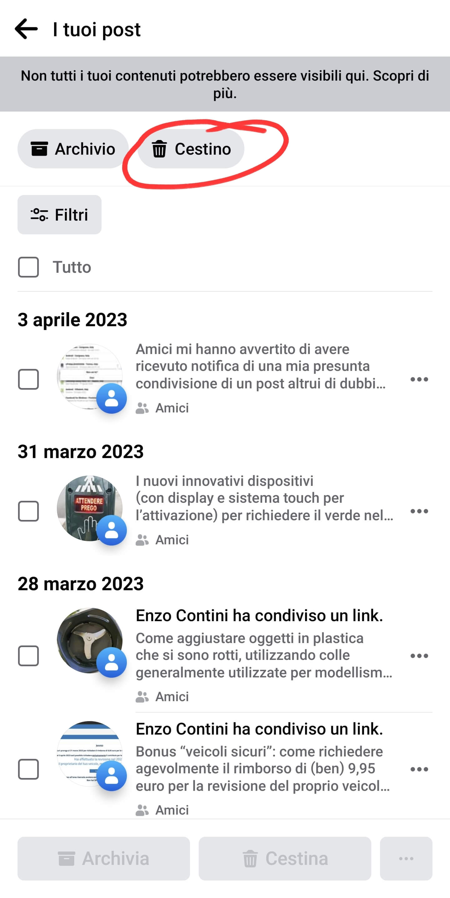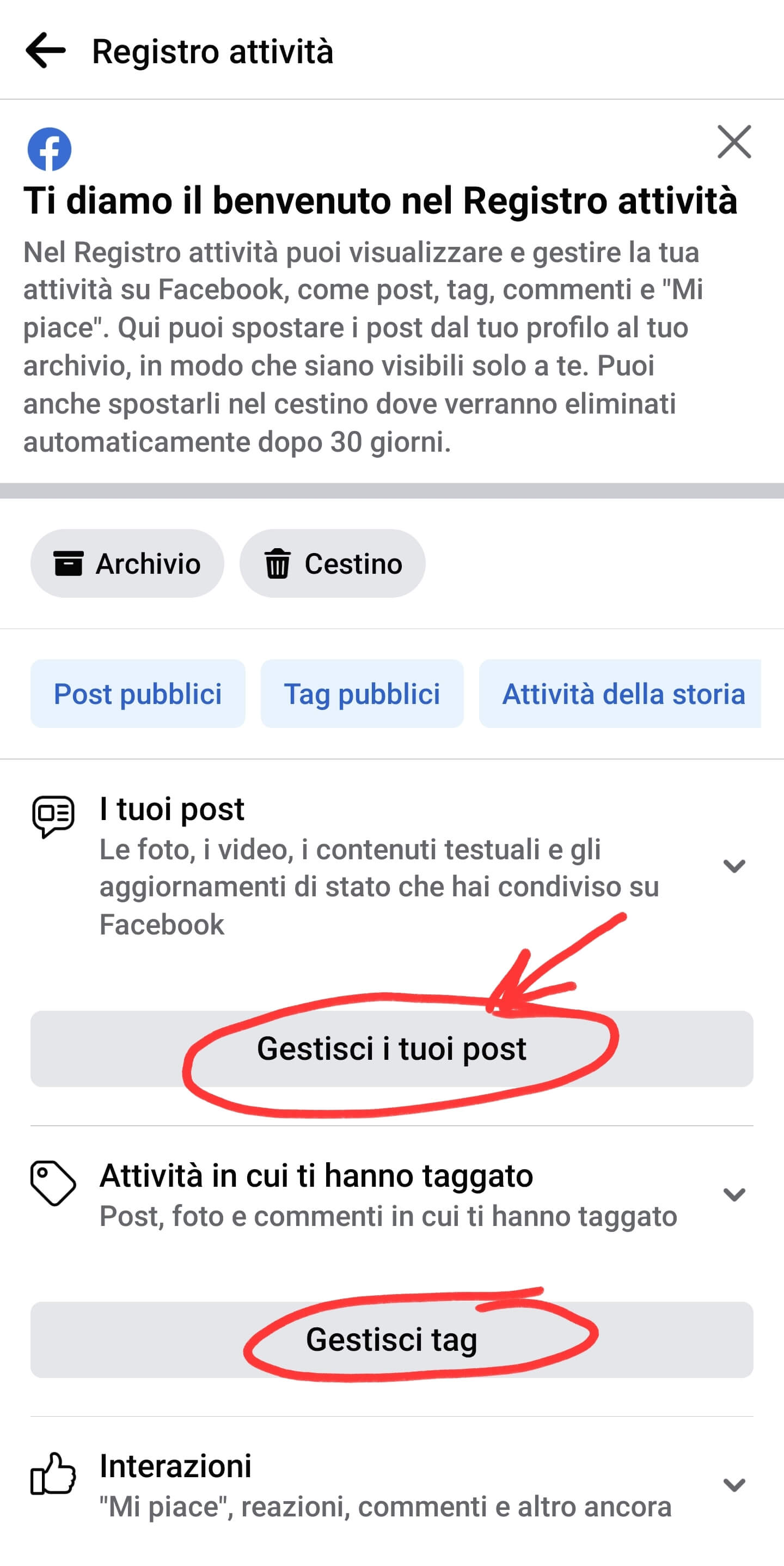 4) Eliminare tutti i post/condivisioni che sono state fatti a nome tuo e a tua insaputa.