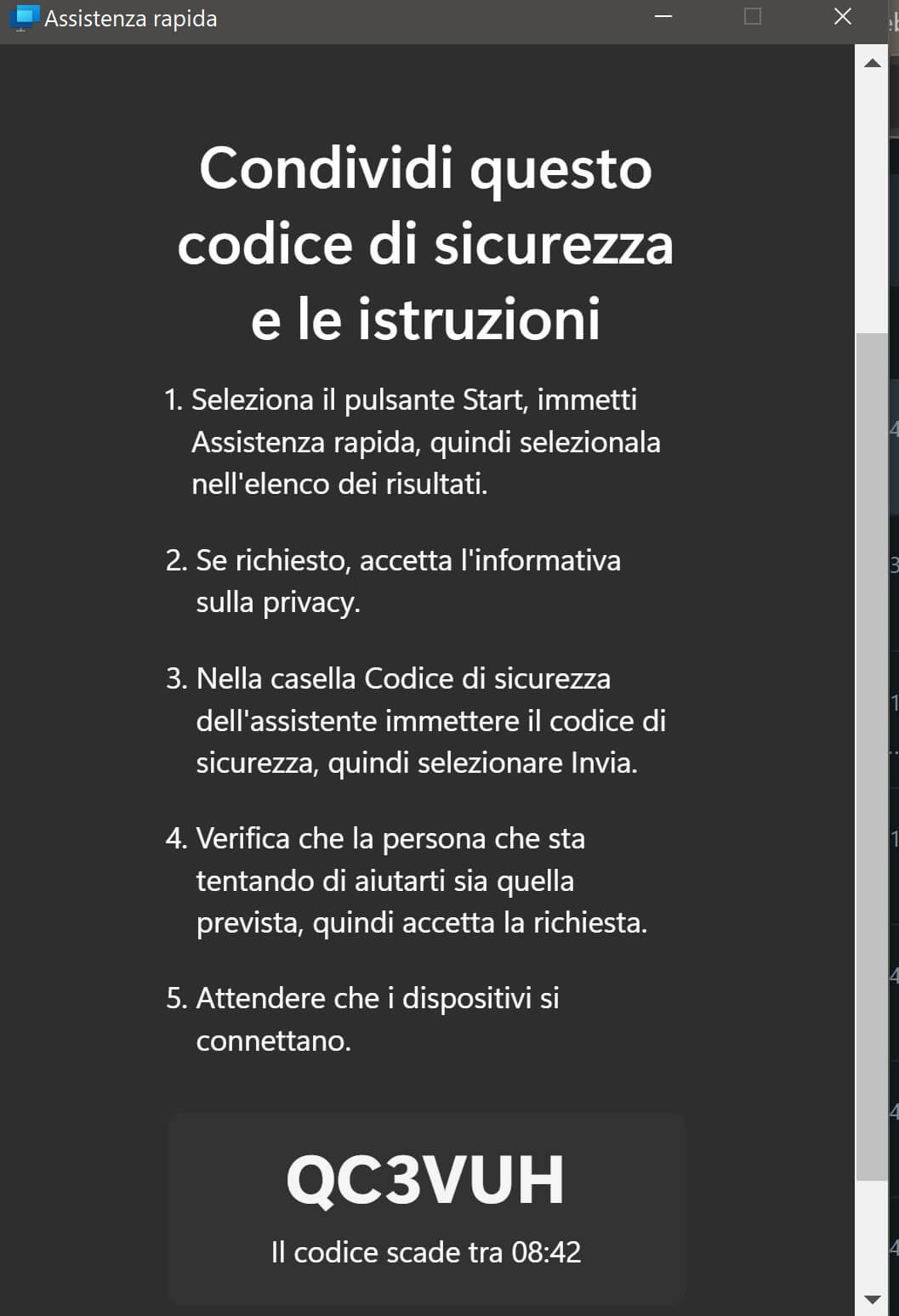 Avevo già anni fa scritto un post relativamente all’applicazione Microsoft Assistenza rapida [ENG: Quick assistance] che consente assai agevolmente di ricevere/dare assistenza da remoto da un PC con Windows 10/11. Da un po’ di tempo questa applicazione, che era presente nella cartella Accessori Windows [ENG: Windows accessories], è stata pubblicata come app scaricabile dal Microsoft Store e vi invito quindi a scaricarla/aggiornarla. Il suo funzionamento non si era inizialmente modificato da un punto di vista dell’interfaccia utente, anche se probabilmente era già stata ottimizzata nel tempo: quindi inizialmente le procedure descritte in quel vecchio post continuavano a valere ma da qualche mese si sono modificate.