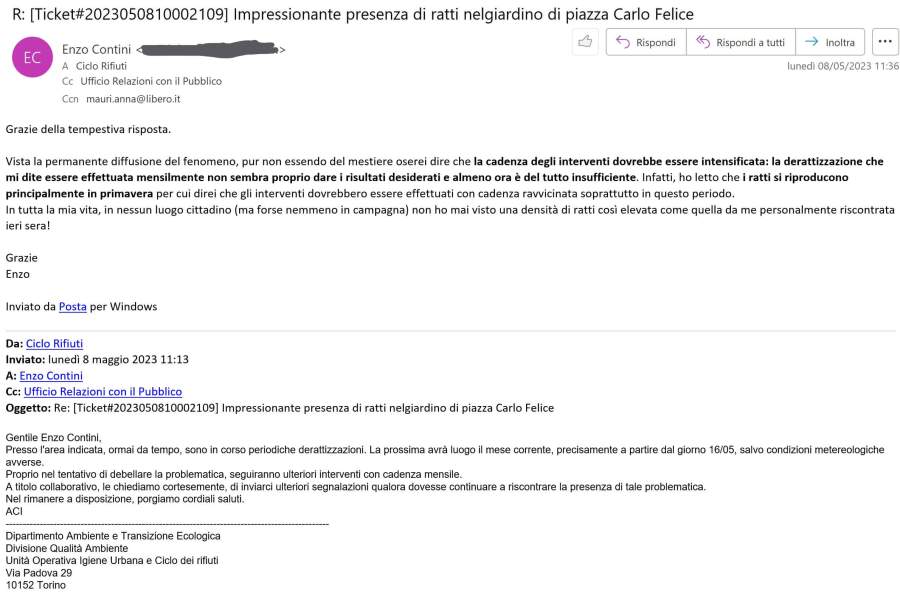Impressionante presenza di ratti nel giardino di piazza Carlo Felice a Torino