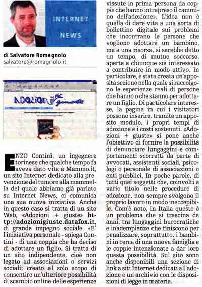 Tiscali, nata solo due anni prima, stava espandendosi seguendo il flusso tecnologico e offrendo la possibilità di pubblicare siti gratuitamente: anch’io avevo sfruttato questa possibilità per pubblicare alcuni siti con l’intento di fornire informazioni ai naviganti del nuovo Web! Ad esempio avevo creato un sito sulla telemedicina (di cui allora mi occupavo), sulle adozioni, per un’associazione di volontariato (Anapaca). Dalla collaborazione con alcuni medici delle Molinette era nato anche un sito sulla prevenzione del tumore al seno (allora collegato al dominio mammo.it): era stata una bella iniziativa a cui molti avevano collaborato con passione e impegno, ciascuno mettendo a disposizione il proprio tempo e competenze. Erano gli anni in cui esistevano nei quotidiani rubriche apposite per segnalare i siti di maggior interesse, appena nati in quella prima rete ancora neonata! Anche alcuni di quei miei siti erano stati segnalati da diverse parti (e.g. La Stampa nella rubrica di Anna Masera; “Corriere della Sera” – Corriere Salute; su “TorinoSette” de “La Stampa” nella rubrica di Salvatore Romagnolo; 15/01/2001): insomma, anche questo è un bel ricordo di cui ho già in parte lasciato traccia in questo blog.