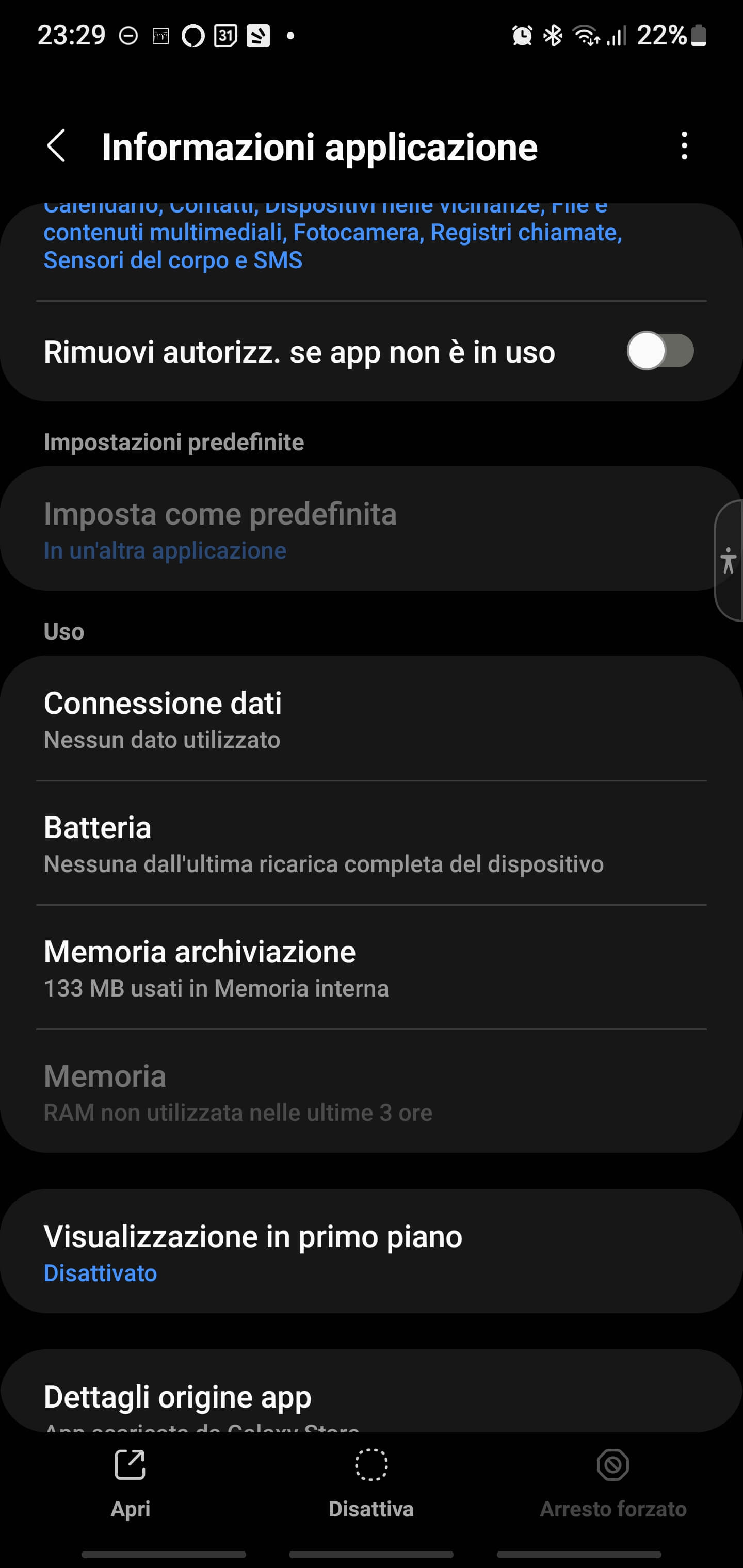 Si noti che Bixby non si può disinstallare nei telefoni Samsung essendo una app preinstallata di quel produttore, ma andando in Impostazioni -> Applicazioni, si possono comunque disabilitare /disattivare le app che riportano il nome di Bixby, rimuovendo le autorizzazioni, le notifiche le visualizzazioni in primo piano e disattivando (per quelle per cui è possibile) agendo sull’icona in basso a destra (Disattiva o, se non possibile per quella specifica app Bixby, almeno Arresto forzato): per cui, se non siete interessati a tale funzionalità, che personalmente trovo piuttosto invadente, potete operare come segue…