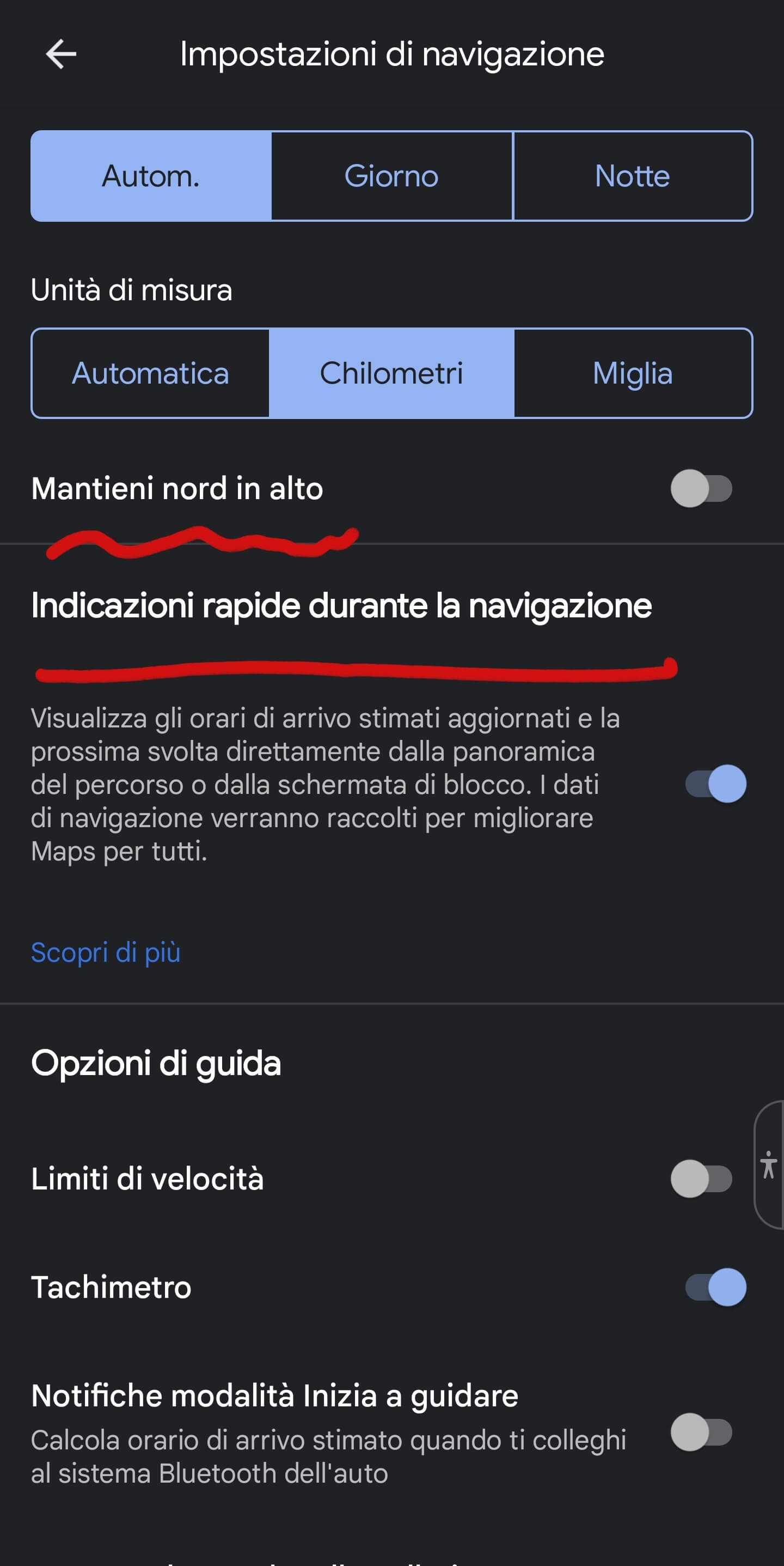 Insomma diverse e molteplici sono le impostazioni interessanti (anche se talune un po’ troppo “nascoste”), ma nulla relativamente all’orientamento della mappa. In realtà esiste in quell’app, sempre nella sezione Impostazioni di navigazione, la possibilità di impostare l’opzione Mantieni nord in alto, ma questa secondo me non aiuta certo a migliorare l’esperienza di navigazione🙄: