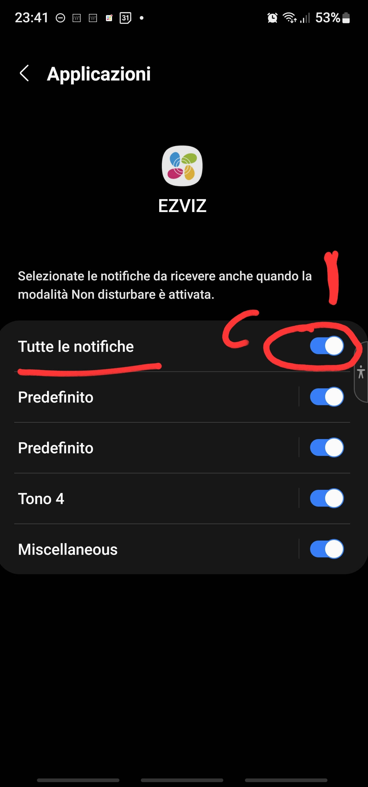 Talvolta, ma dipende dal telefono, anche impostando un suono di default particolare per quella specifica app, continua ad essere emesso come notifica quello generico impostato come default nel telefono… anche se non dovrebbe avvenire per le app in cui viene specificato di usare un’altro suono specificatamente indicato nella configurazione di quell’app: probabilmente è solo un bug del loro sistema operativo che si risolve con futuri aggiornamenti. In quel caso conviene allora temporaneamente indicare il suono Tone 3 (sirena seppur breve) di allarme preimpostato nell’app Ezviz e non Predefinito, riprovando poi dopo aggiornamenti a rimetterlo! Ho comunque scritto all’assistenza Ezviz suggerendo loro di inserire nei prossimi aggiornamenti dell’app un Tone cablato nell’app stessa che si una sirena di intensità crescente e di lunga durata, in modo che sia adeguata per no spaventare/disturbare inizialmente ma anche da non passare inascoltata durando molto se non interrotta (premendo un tasto del volume del cellulare).