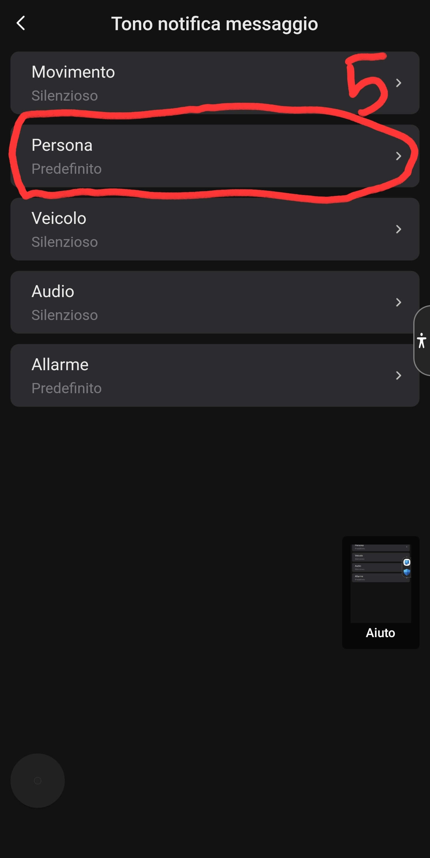 L’impostazioni dei suoni che attualmente preferisco è la seguente (si noti come, rispetto agli screenshot precedenti fatti qualche mese fa, l’elenco delle tipologie di eventi a cui associare un suono sia stato esteso ulteriormente in seguito a recenti aggiornamenti): negli ultimi aggiornamenti dell’app hanno anche migliorato la nomenclatura (e.g. Persona è diventato Figura umana rivelata), indice che l’app migliora sempre più, così come anche il firmware della telecamera stessa (si è aggiornato per ben due volte da quando l’ho acquistata!).