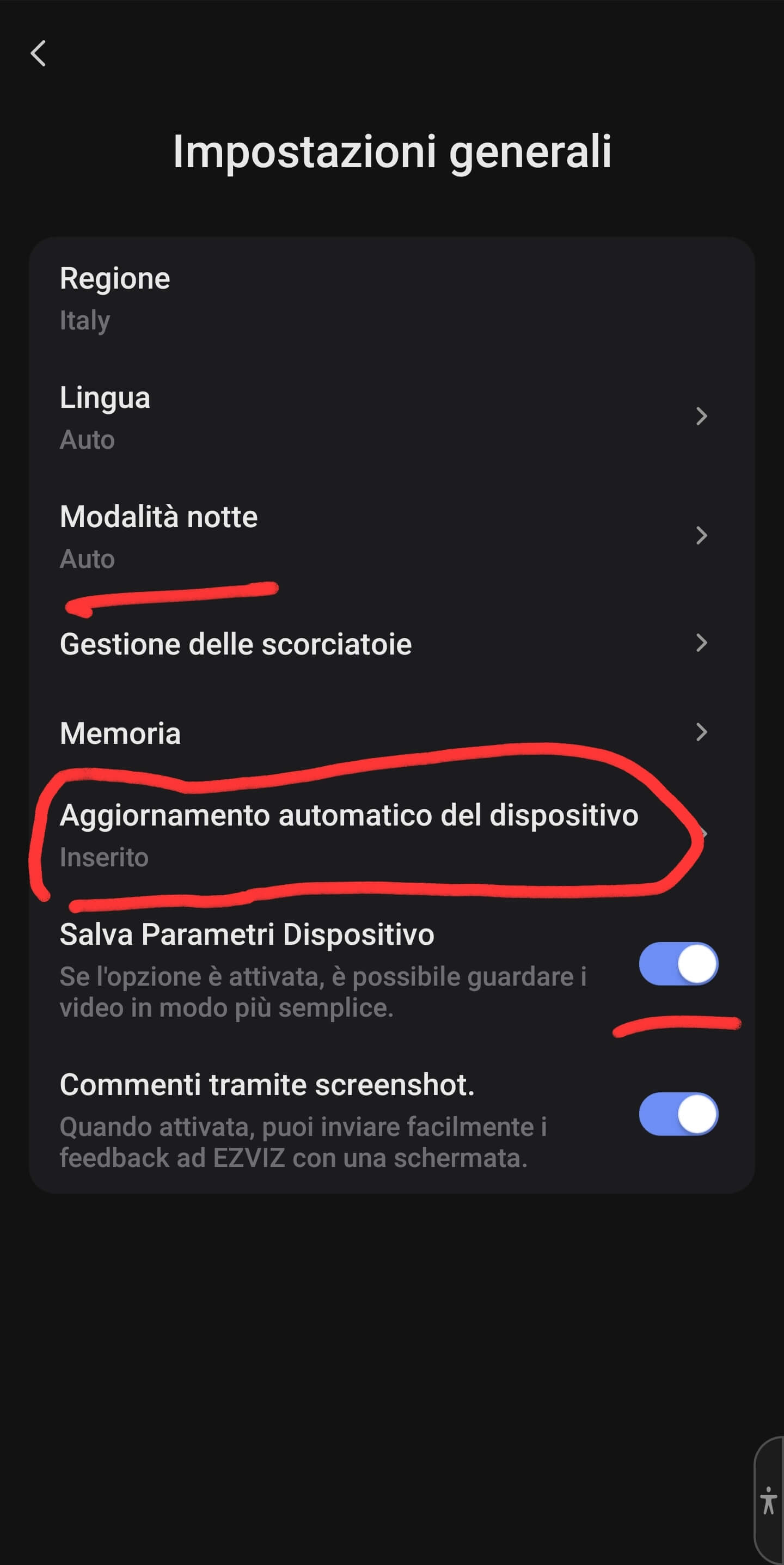P.S. 17/1/2023 Mi ha telefonato gentilmente l’assistenza Ezviz per notificarmi di verificare che le mie telecamere si fossero aggiornate all’ultima versione del firmare ( i.e. vers. 5.2.5 built 231016) che avrebbe dovuto risolvere tale problematica. Effettivamente, il firmware si era aggiornato automaticamente (avendo già io impostato tale opzione nel menù che compare cliccando sulla propria immagine utente – in alto a sx – Impostazioni -> Impostazioni generali -> Aggionamento automatico del dispositivo) e provando a togliere l’alimentazione temporaneamente ad una telecamera con Notifica allarme ad ON, rialimentandola tale impostazione ora permane! Comunque ho continuato a mantenere la notifica Allarme offline p, utile comunque per verificare l’effettivo suo funzionamento.
