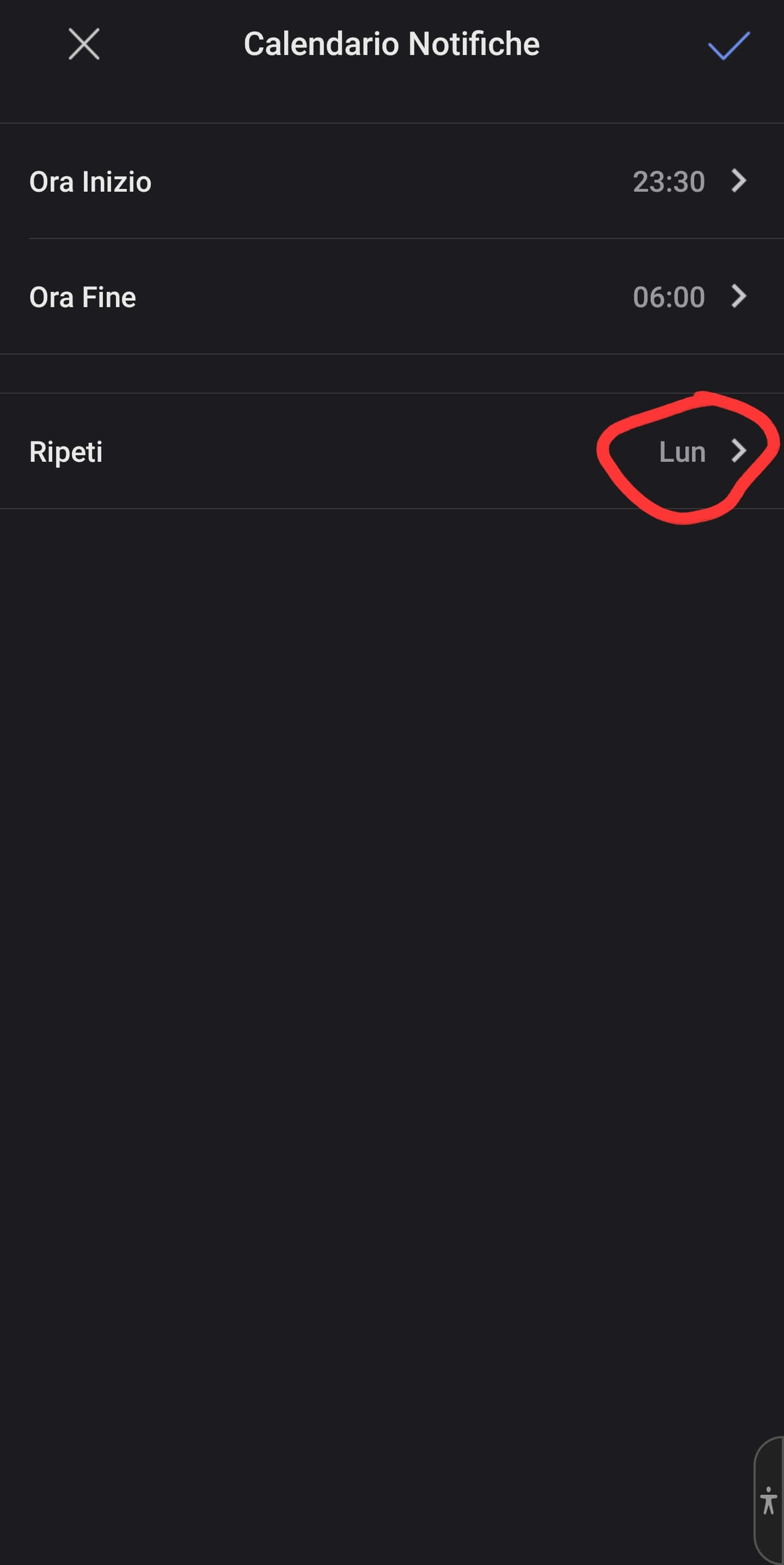 Attenzione: una volta effettuate le scelte desiderate è necessario, per memorizzarle, confermare toccando il segno di spunta in alto a destra:
