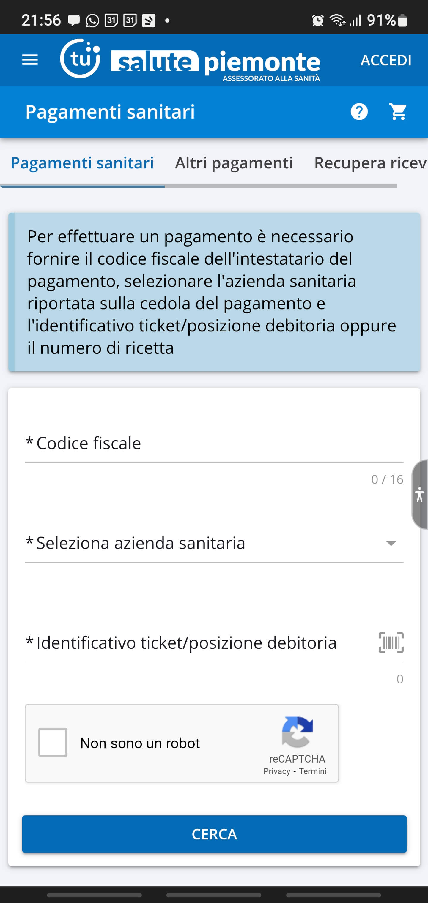 Se non ci si autentica, è necessario inserire tutti i dati (i.e. codice fiscale, azienda saniaria, identificativo ticket, vale a dire il numero associato al codice a barre presente nel foglio di pagamanto). Al contrario, se si accede con SPID (link ACCEDI in alto a destra) nerlla sezione Pagamenti sanitari uno dovrebbe trovare i pagamenti in sospeso, se presenti: questa seconda procedura può essere più semplice non richiedendo l’inserimento di dati specifici al pagamanto ma, come tutte le autenticazioni con SPID, è sempre un’incognita e potrebbe portar via ancor più tempo (e.g. app del provider dello SPID da aggionare, password di autenticazione scaduta)! Provando accedere, l’autenticazione SPID falliva per uno dei molteplici motivi da indagare per cui, ho preferito attendere il mio turno in coda anche perchè non avrei mai voluto avere contestazioni sul pagamnto non potendo stampare la ricevuta su un foglio da esibire all’impiegata!