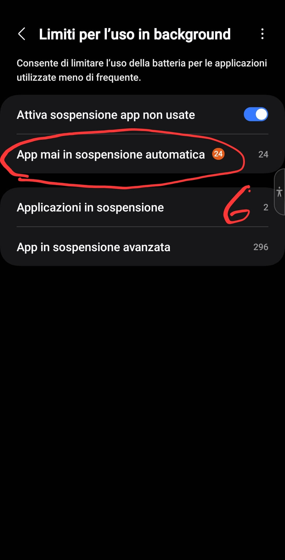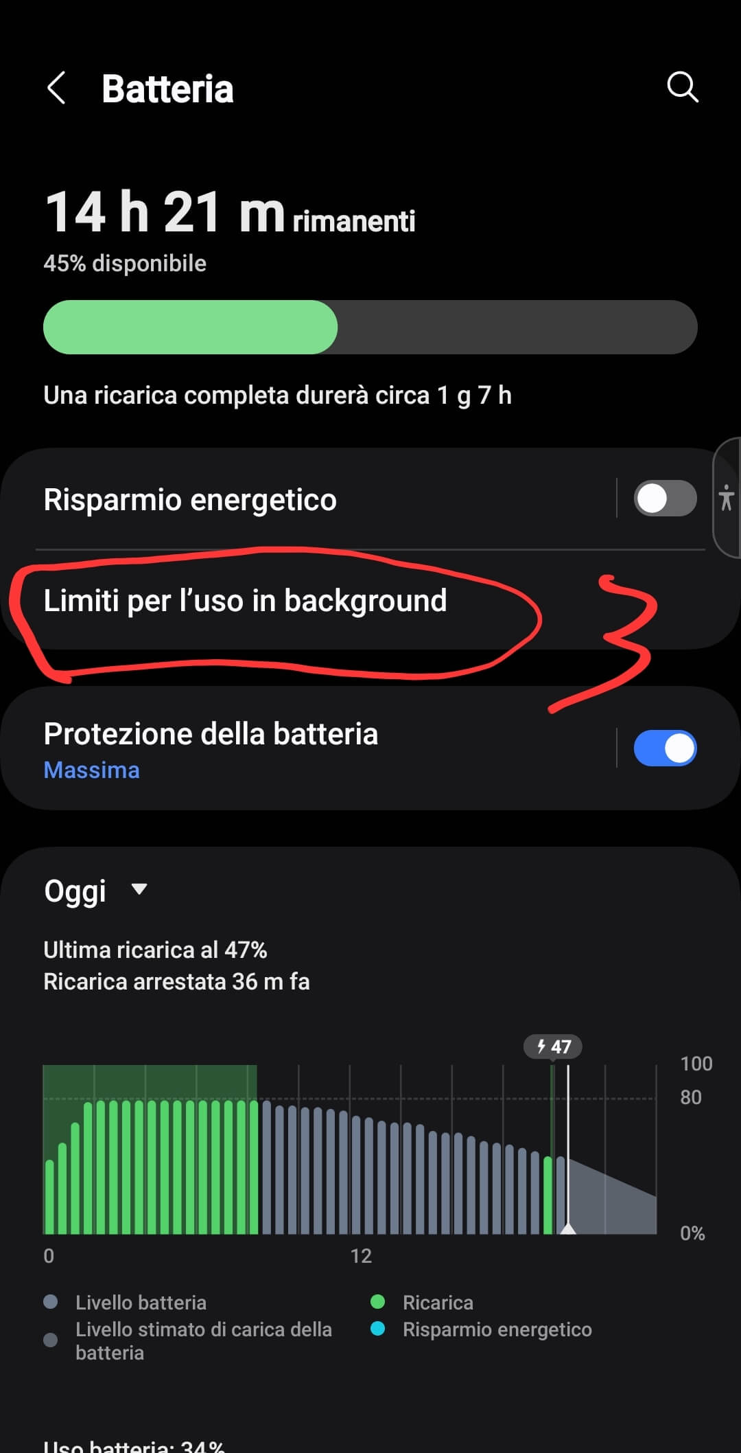 È necessario innanzitutto andare nelle impostazioni relative alla Batteria: Impostazioni -> Batteria -> Limitazioni per l’uso in background: