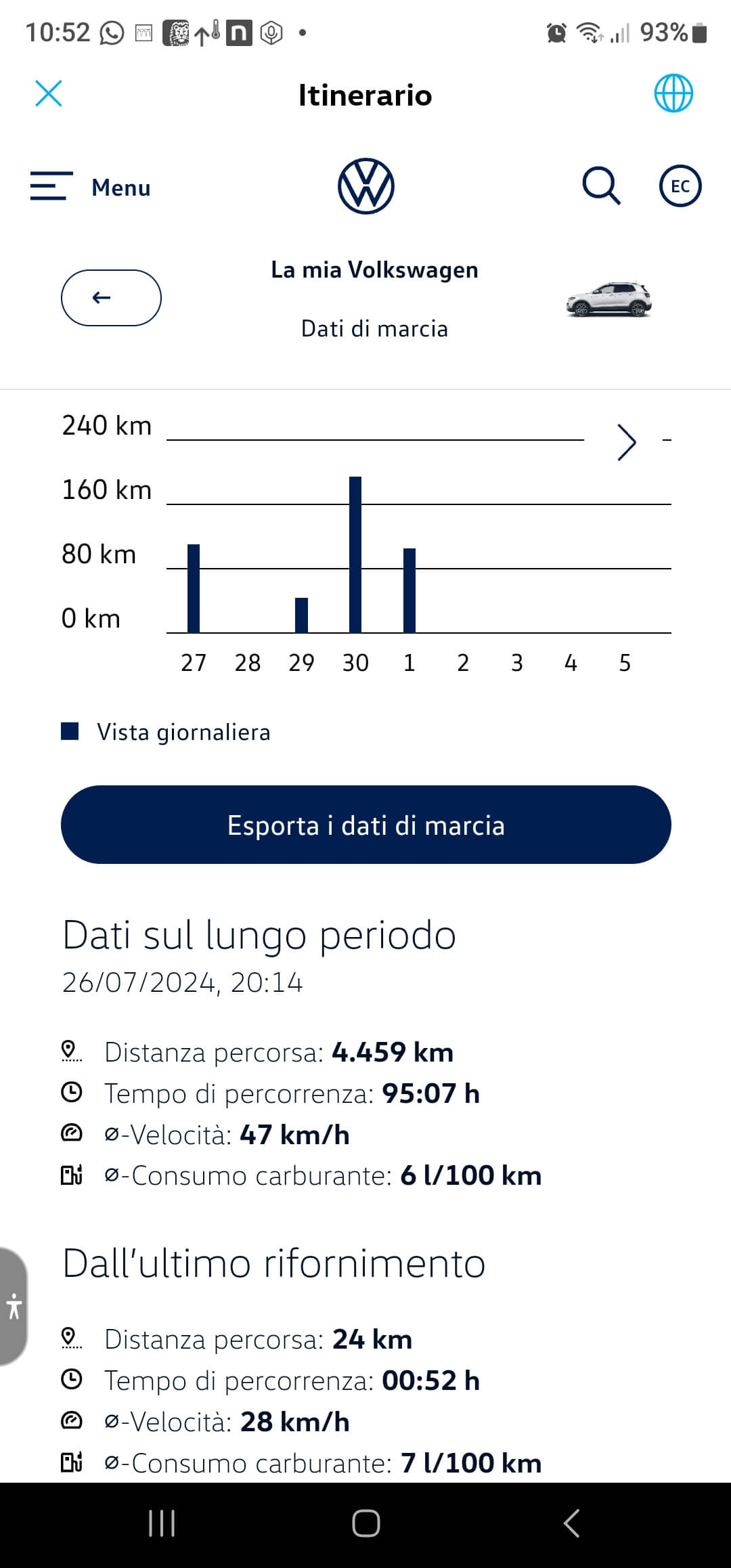Le auto Volkswagen possono usufruire di diversi servizi attraverso l’app Volkswagen che consente ad esempio di conoscere da remoto i dati di marcia e lo stato del veicolo oltre che conoscerne la posizione su una mappa. Ovviamente per poter usufruire di questi servizi è necessario non solo inizialmente accettare tali servizi, ma anche impostare sulla propria utenza Volkswagen una sfera privata in modo tale da non essere massima bensì quella di “Condividi posizione“, vale a sirte la più lasca da un punto di vista della privacy, necessaria se si desidera per poter anche avere la localizzazione del veicolo da remoto. Quest’ultima funzionalità assai utile se uno non si ricorda bene dove ha posteggiato l’auto anche se si potrebbe ottenere un risultato analogo anche utilizzando un tag (e.g. Samsung Galaxy SmartTag2 se uno ha un telefono Samsung o Apple AirTag se si possiede un iPhone) da lasciare sempre in macchina!! Se ho compreso ben infatti, tali servizi remoti risultano gratuiti solo per un certo periodo di tempo (2 anni?) per poi passare a pagamento… per cui la soluzione tag potrebbe tornare conveniente se interessa avere solo la localizzazione del veicolo.