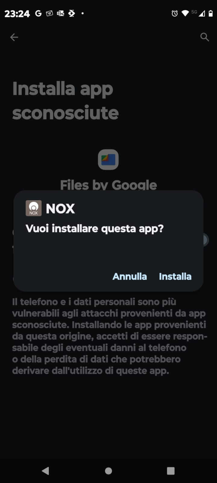 Ovviamante, non essendo installata tramite il Play Store ma direttaamnte dal file apk scaricato in locale, ho dovuto forzare lo smartphone a riconoscerla come affidabile:
