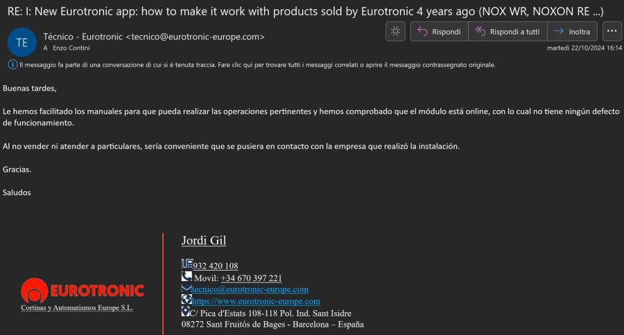 ← EUROTRONIC non fornisce un valido supporto per un suo prodotto di domotica venduto solo 4 anni fa, alias quando una ditta non rispetta i minimi requisiti di correttezza verso la sua clientela