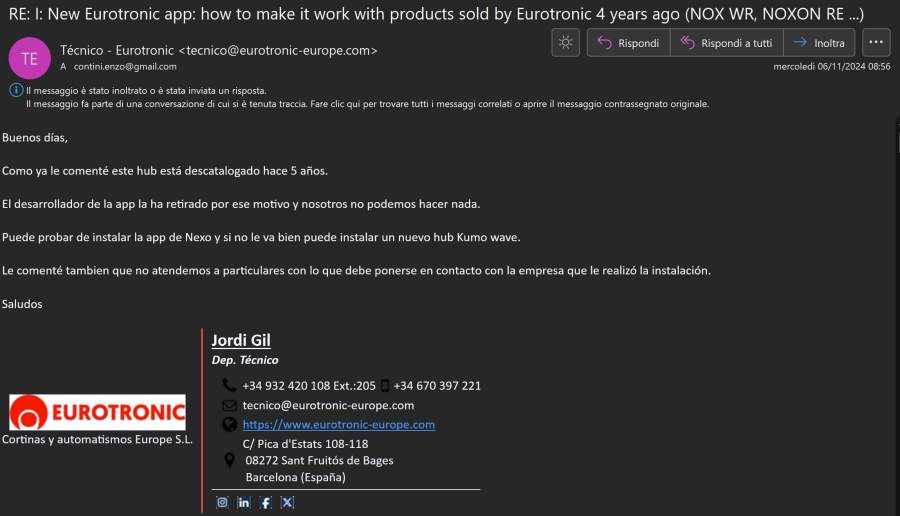 EUROTRONIC non fornisce un valido supporto per un suo prodotto di domotica venduto solo 4 anni fa, alias quando una ditta non rispetta i minimi requisiti di correttezza verso la sua clientela